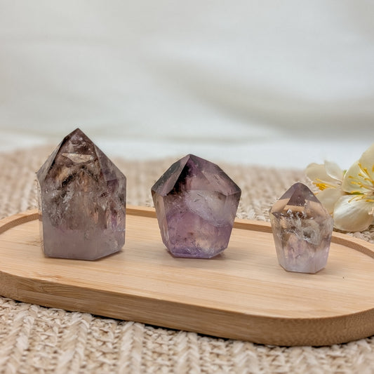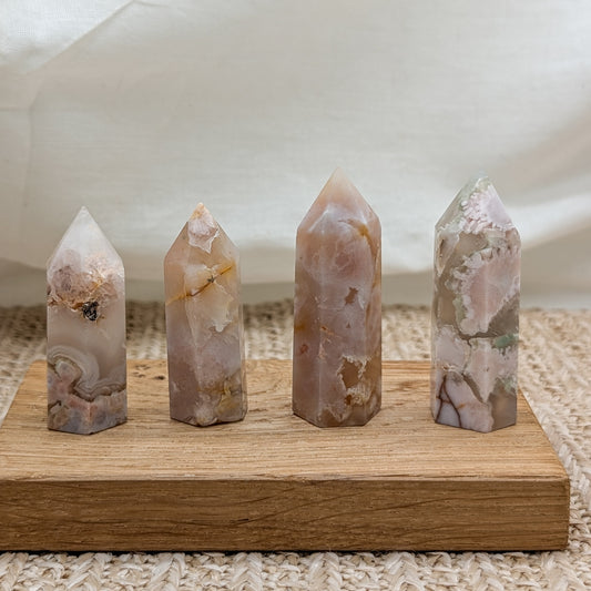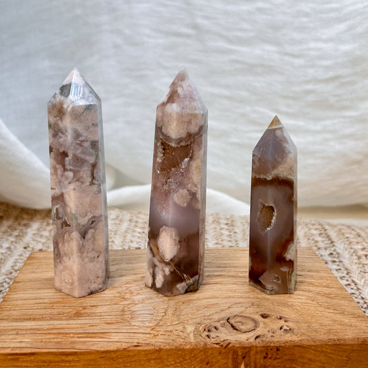 Hier findest du Kristall- und Edelsteintürme und Spitzen in unterschiedlichen Mineralien, wie...