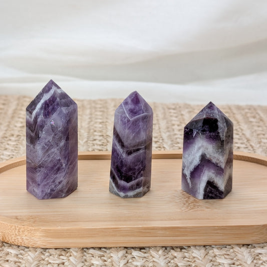 Hier findest du Kristall- und Edelsteintürme und Spitzen in unterschiedlichen Mineralien, wie...