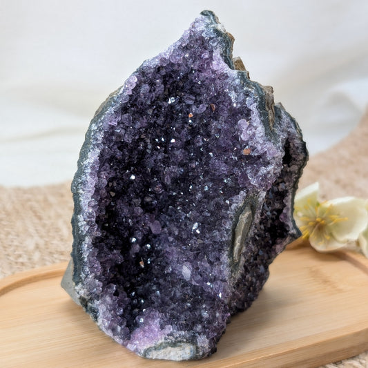 AusverkauftGroßes Amethyst Portal / Scheibe auf Ständer