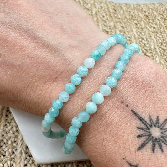 Aquamarin Erdbeerquarz Mix-Armband facettiert 4 mm