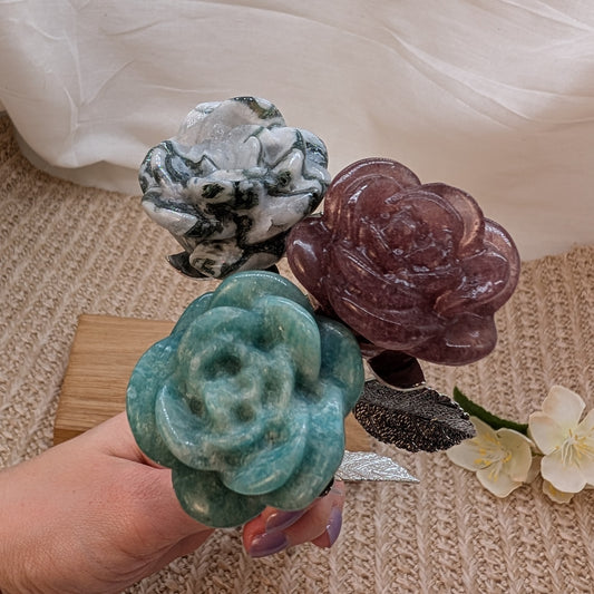 Edelstein Rose [Amazonit, Erdbeerquarz, Moosachat]