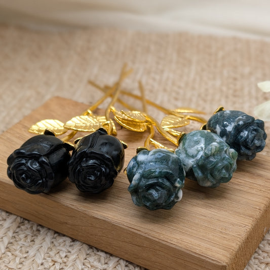 Kleine Rosen (Moosachat und Obsidian), goldfarben