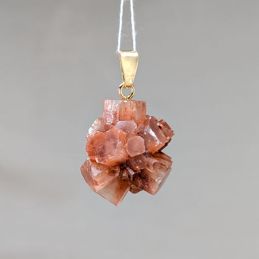 Orangencalcit 🍊 Kettenanhänger, 925er Silber vergoldet [A]