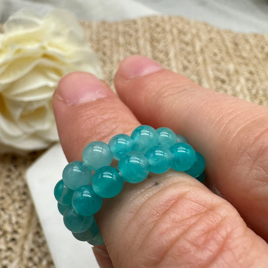 Bergkristall Perlen Ring (mit Amethyst, Rosenquarz oder Apatit)
