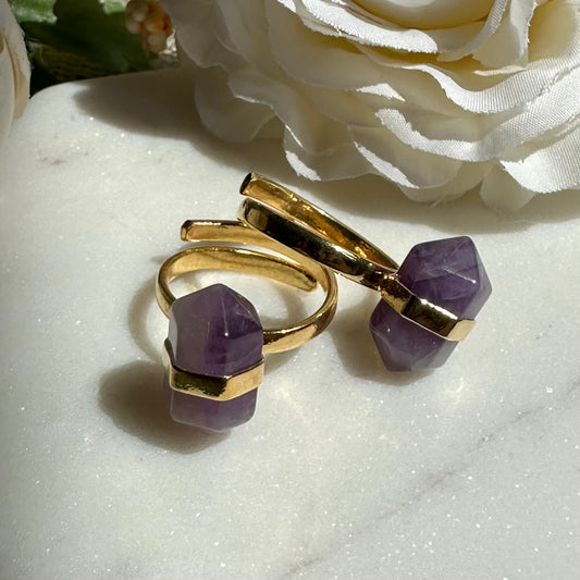 AusverkauftAmethyst Ring Doppelspitze goldfarben