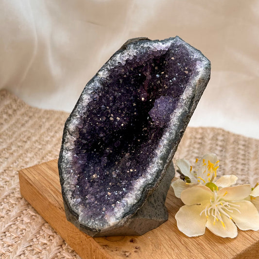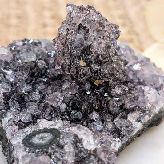 Amethyst Cluster / Rohstein mit Calcit [AB]