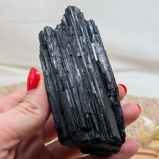 Schwarzer Turmalin / Schörl Rohstück [QR]