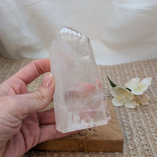 Bergkristall Rose mit Blatt auf Ständer [BT]