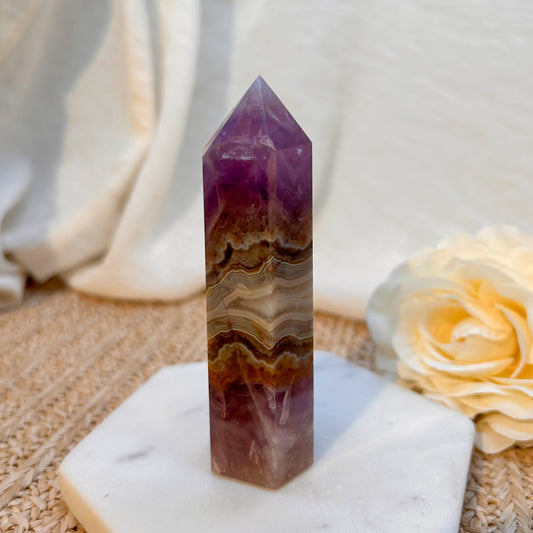 Amethyst Turm mit mexikanischem Lace Achat [AL]