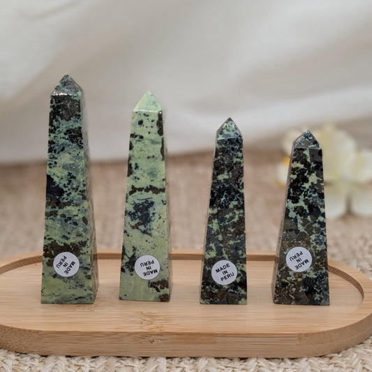 Serpentin mit Pyrit Turm / Spitze [A-D]