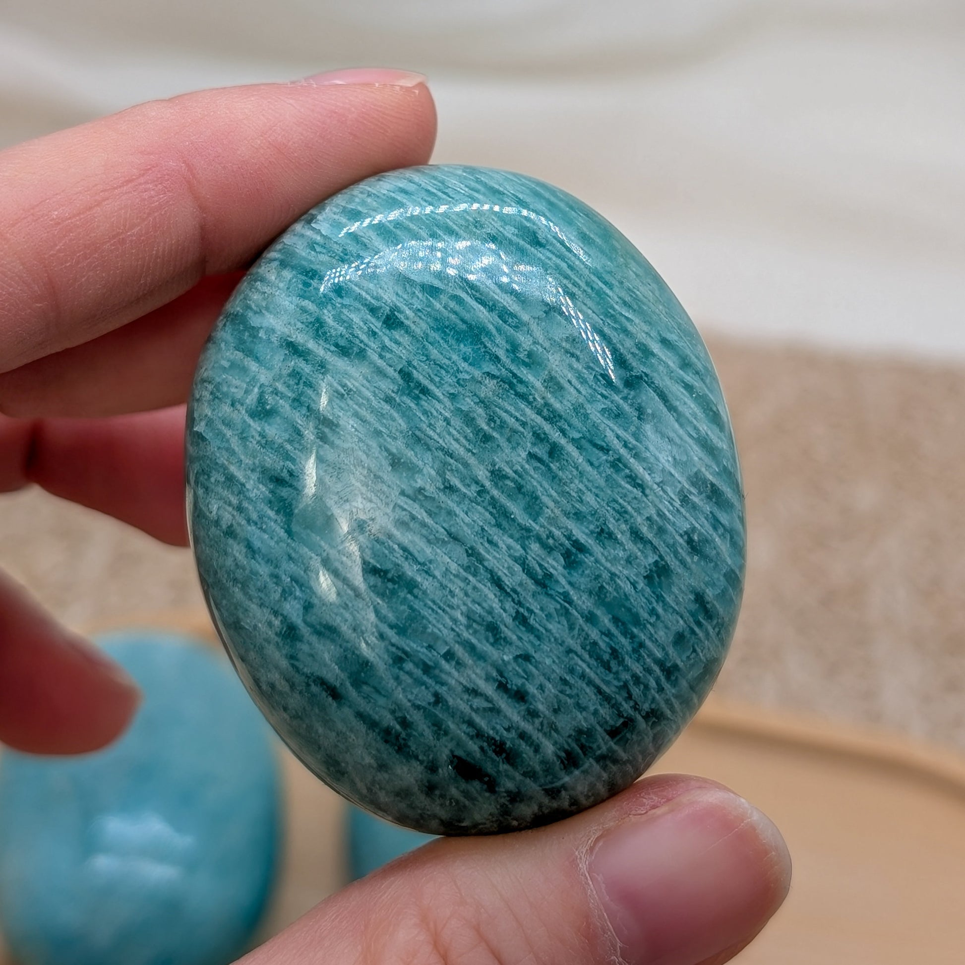 Amazonit Handstein mit silber Schimmer in drei Varianten: