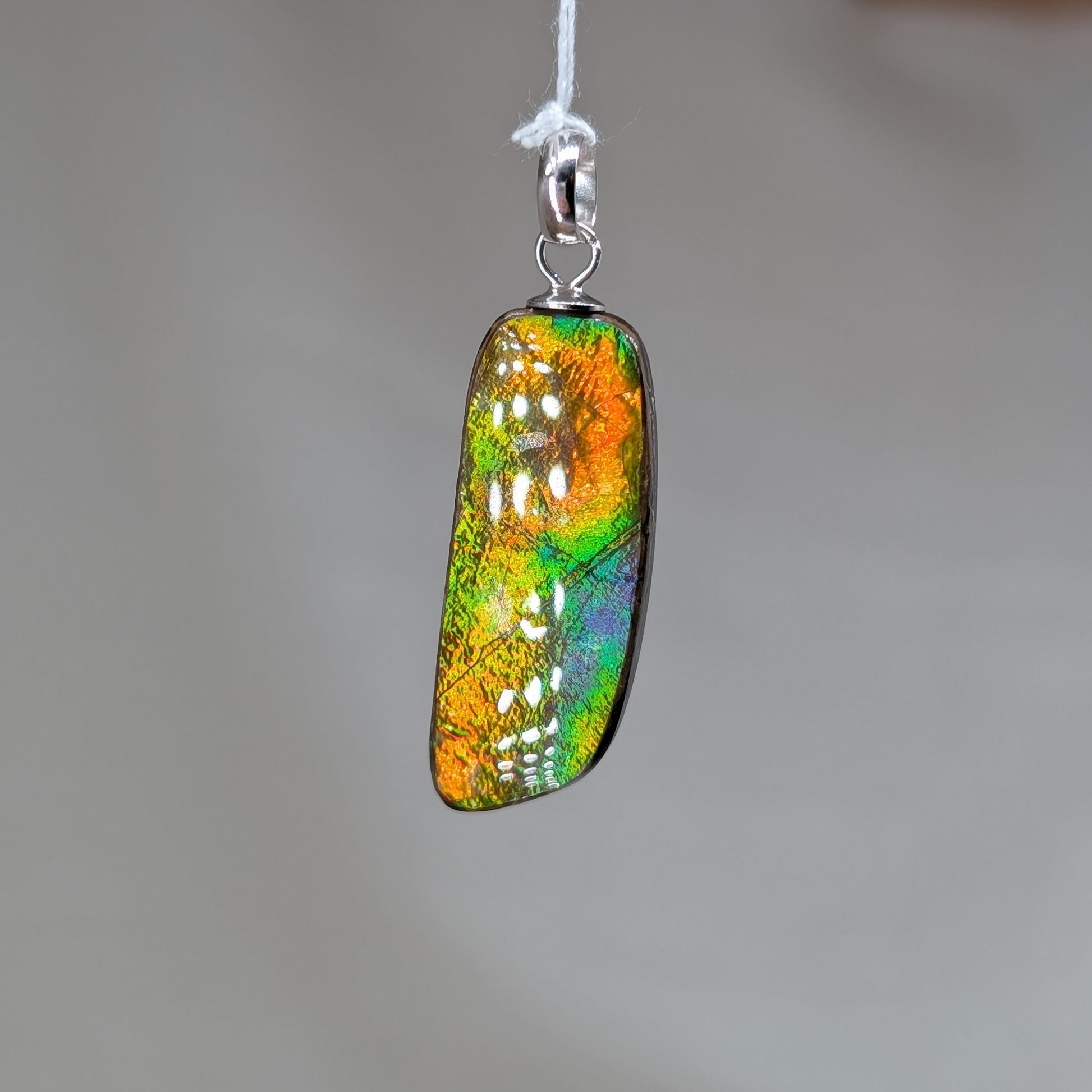 Bunt schimmernder Ammolith Kettenanhänger mit rhodinierter Öse aus 925er Silber
