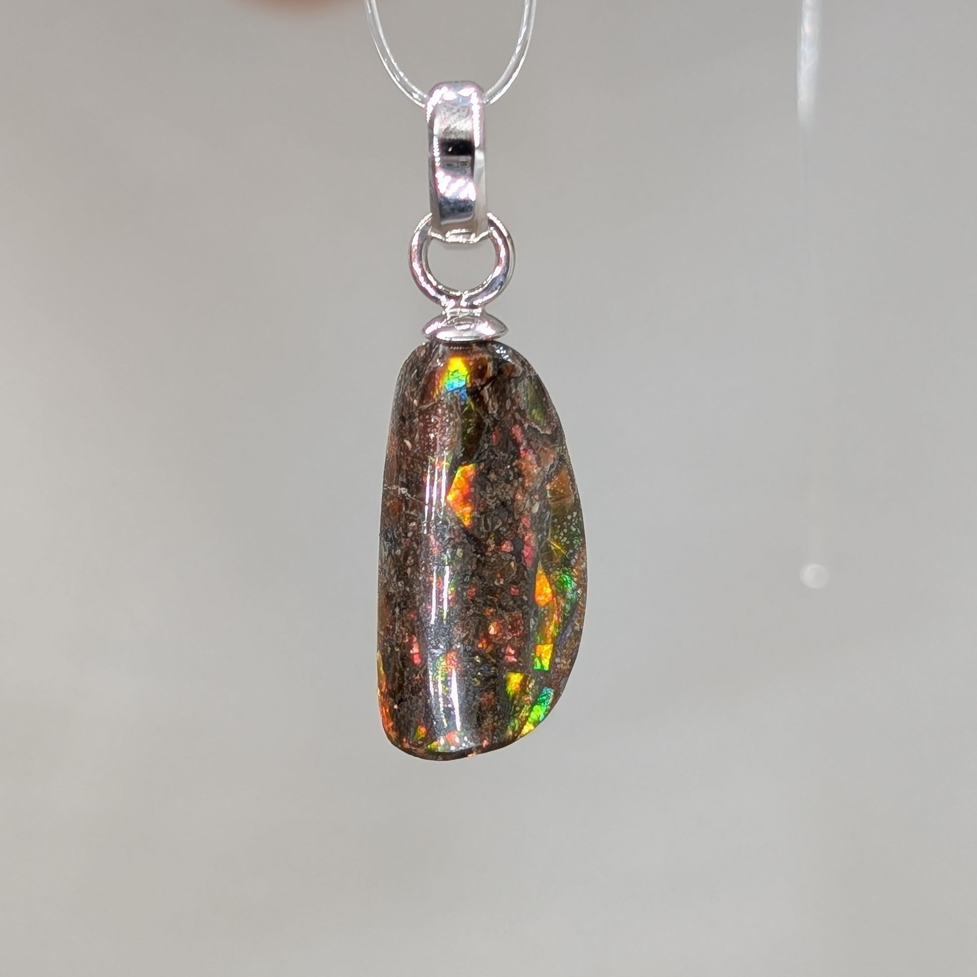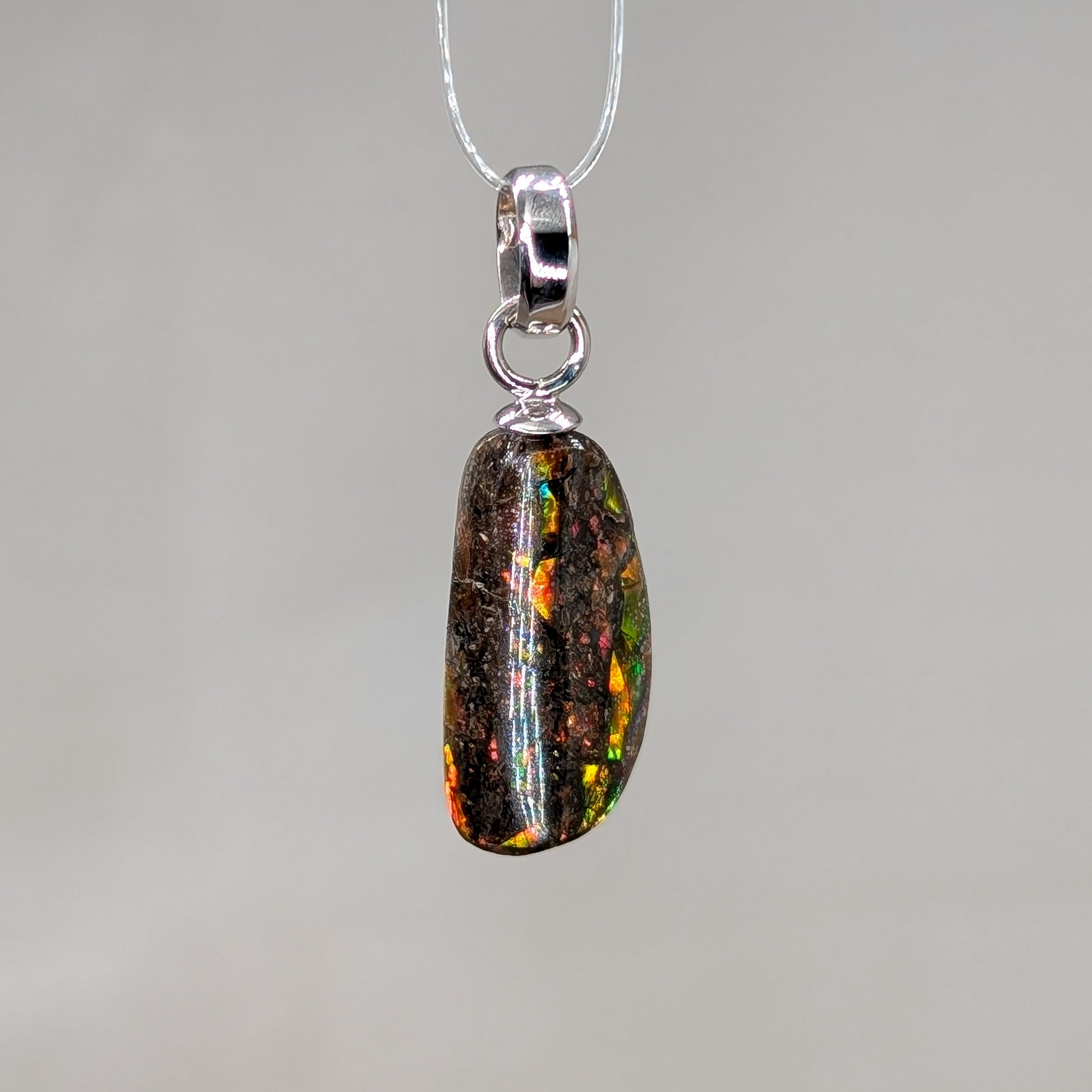 Bunt schimmernder Ammolith Kettenanhänger mit rhodinierter Öse aus 925er Silber