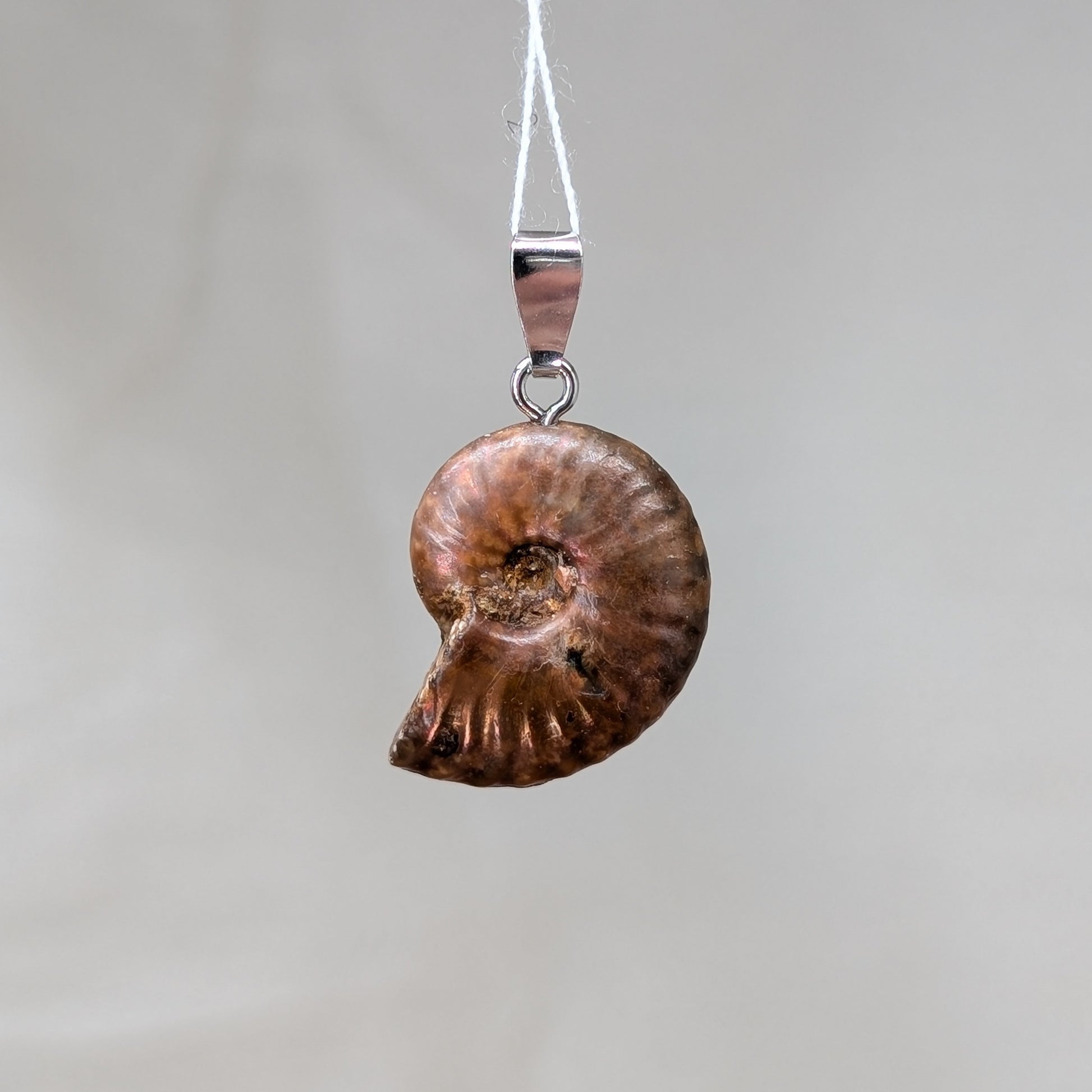 Dezent schimmernder Ammonit Anhänger mit Öse aus 925er Silber