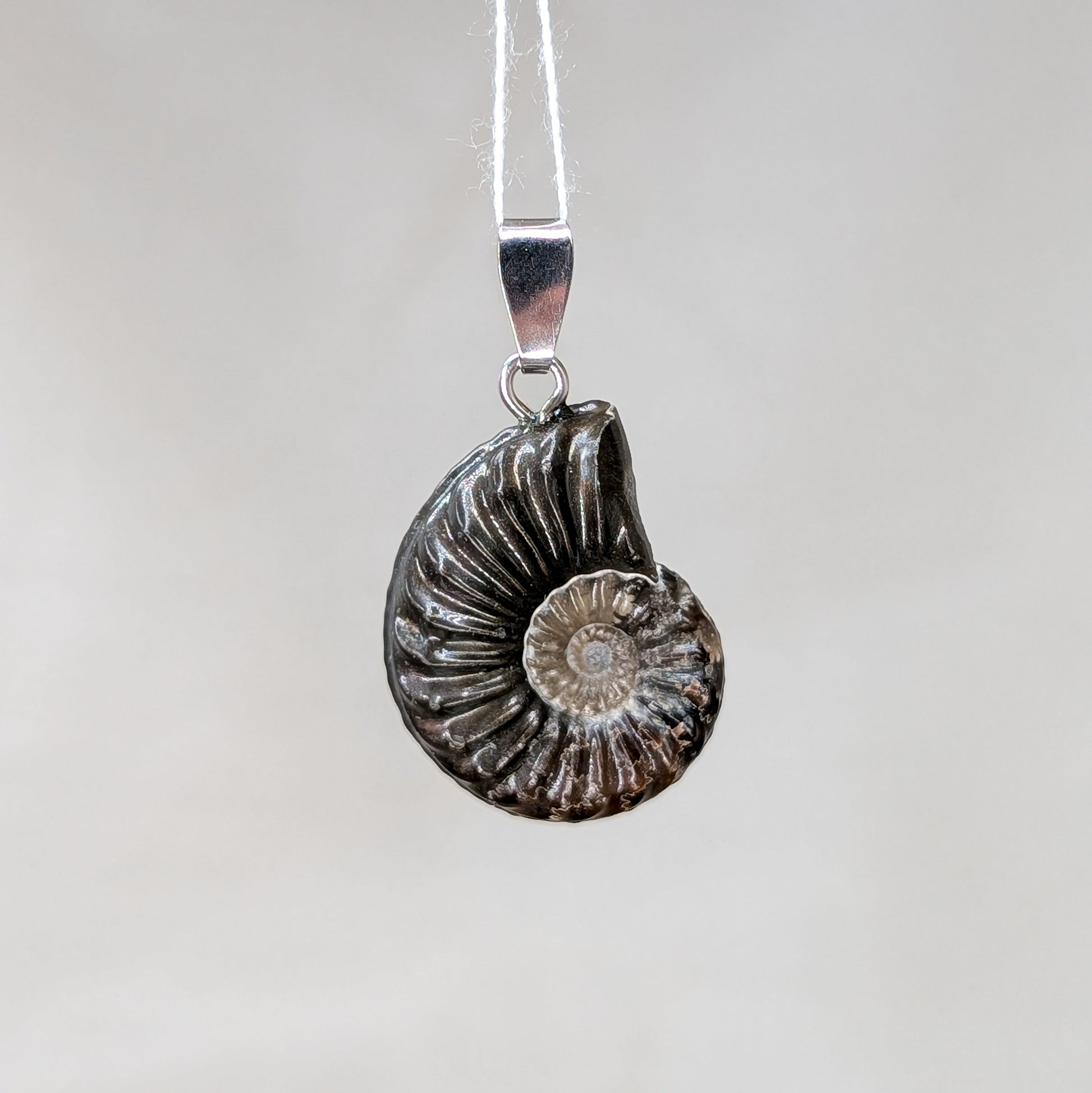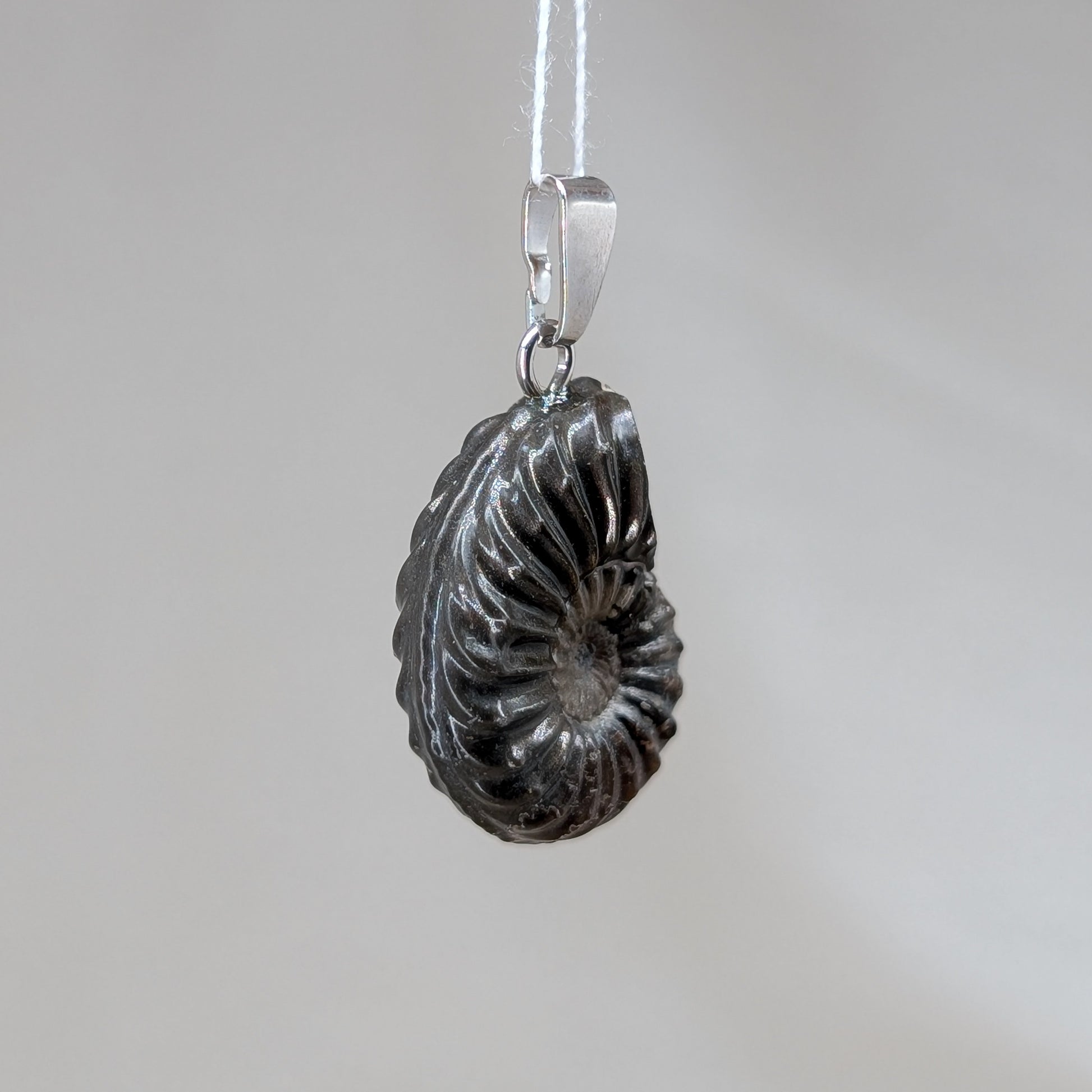 Pyritisierter Ammonit Kettenanhänger aus Deutschland (Franken) – mit rhodinierter Öse aus 925er Silber
