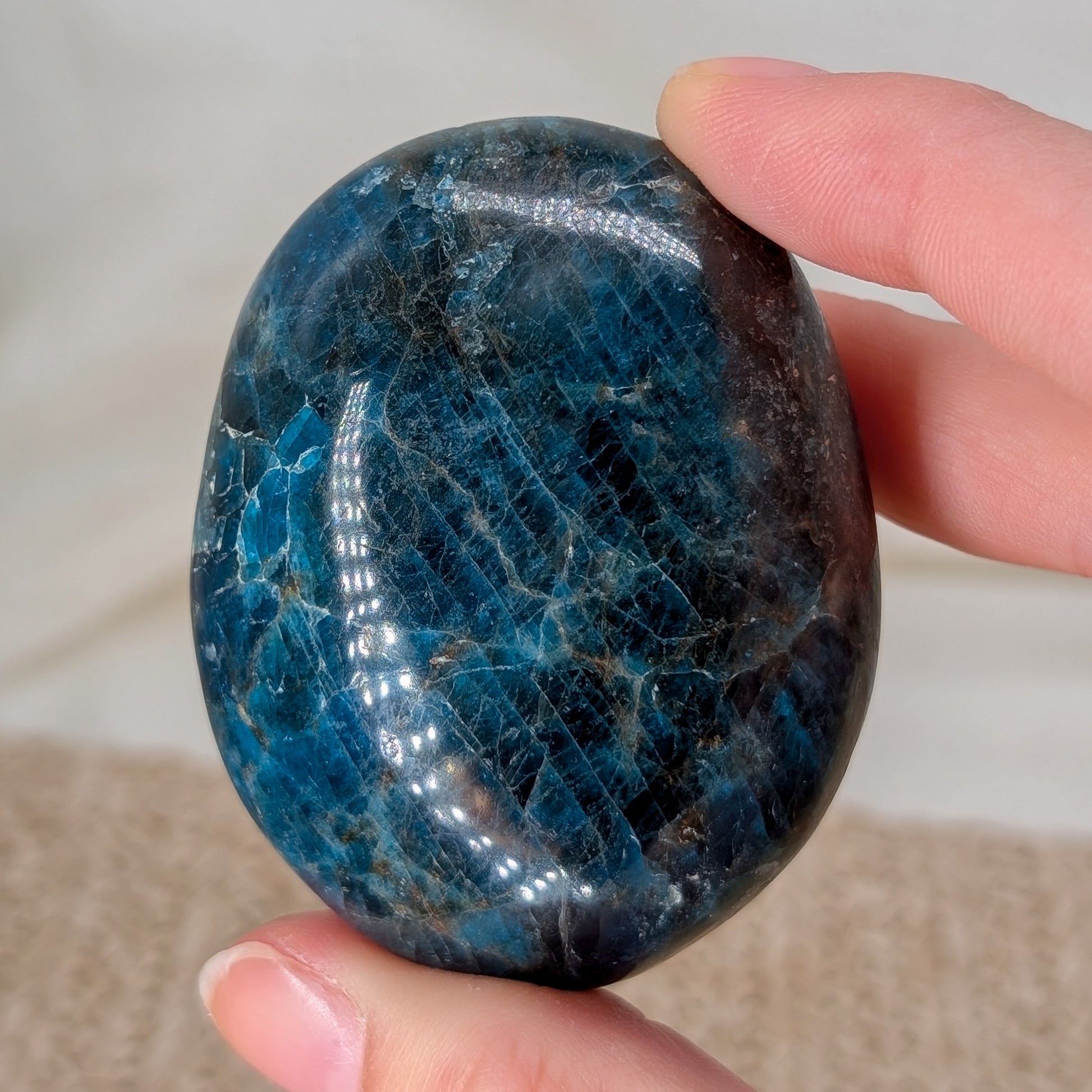 Glitzernder Apatit Handstein in schönem Blau