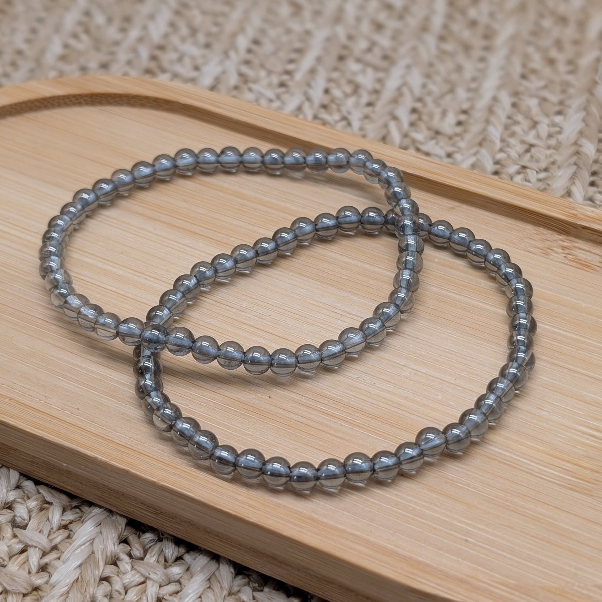 Armband aus grauem Aura Bergkristall in schöner Transparenz.