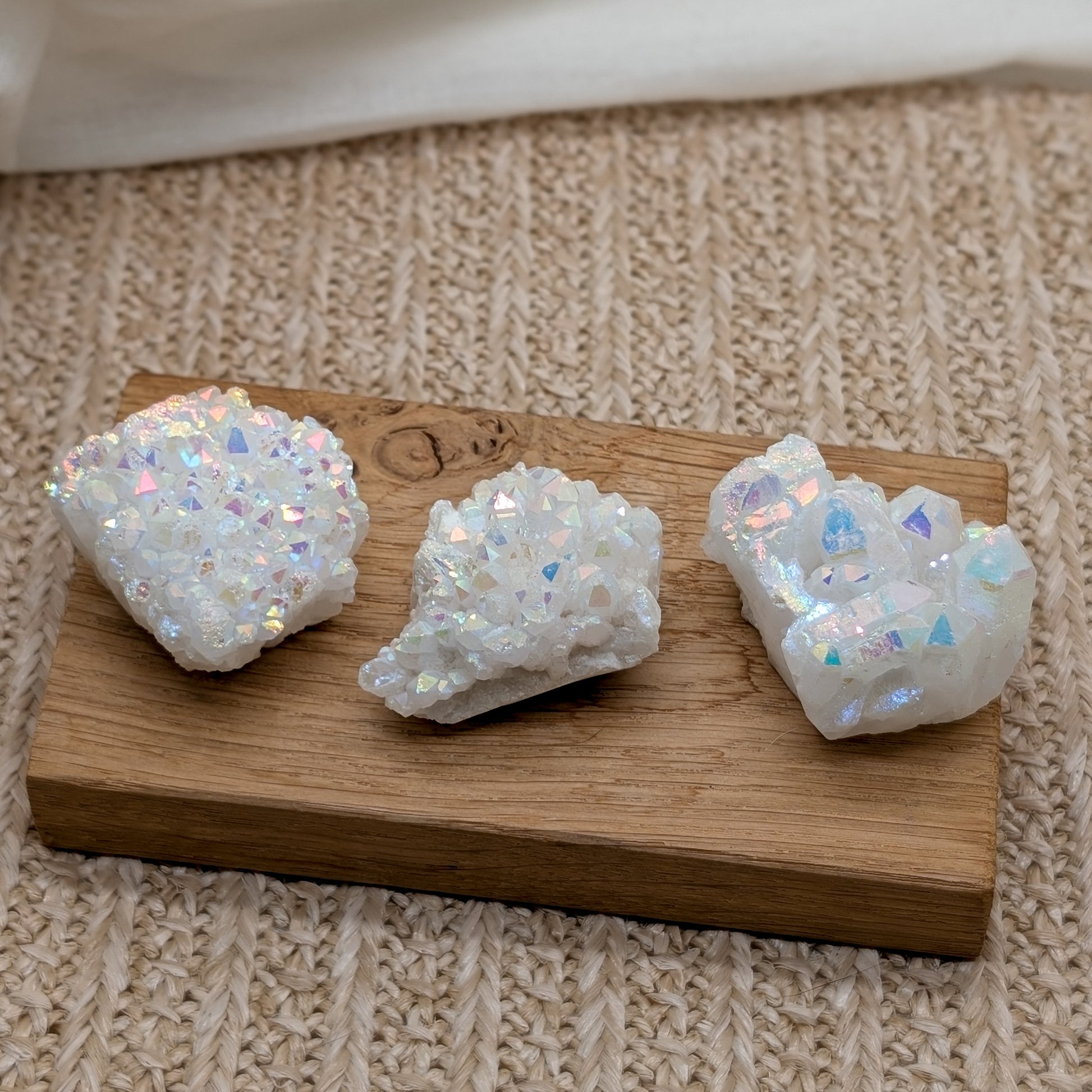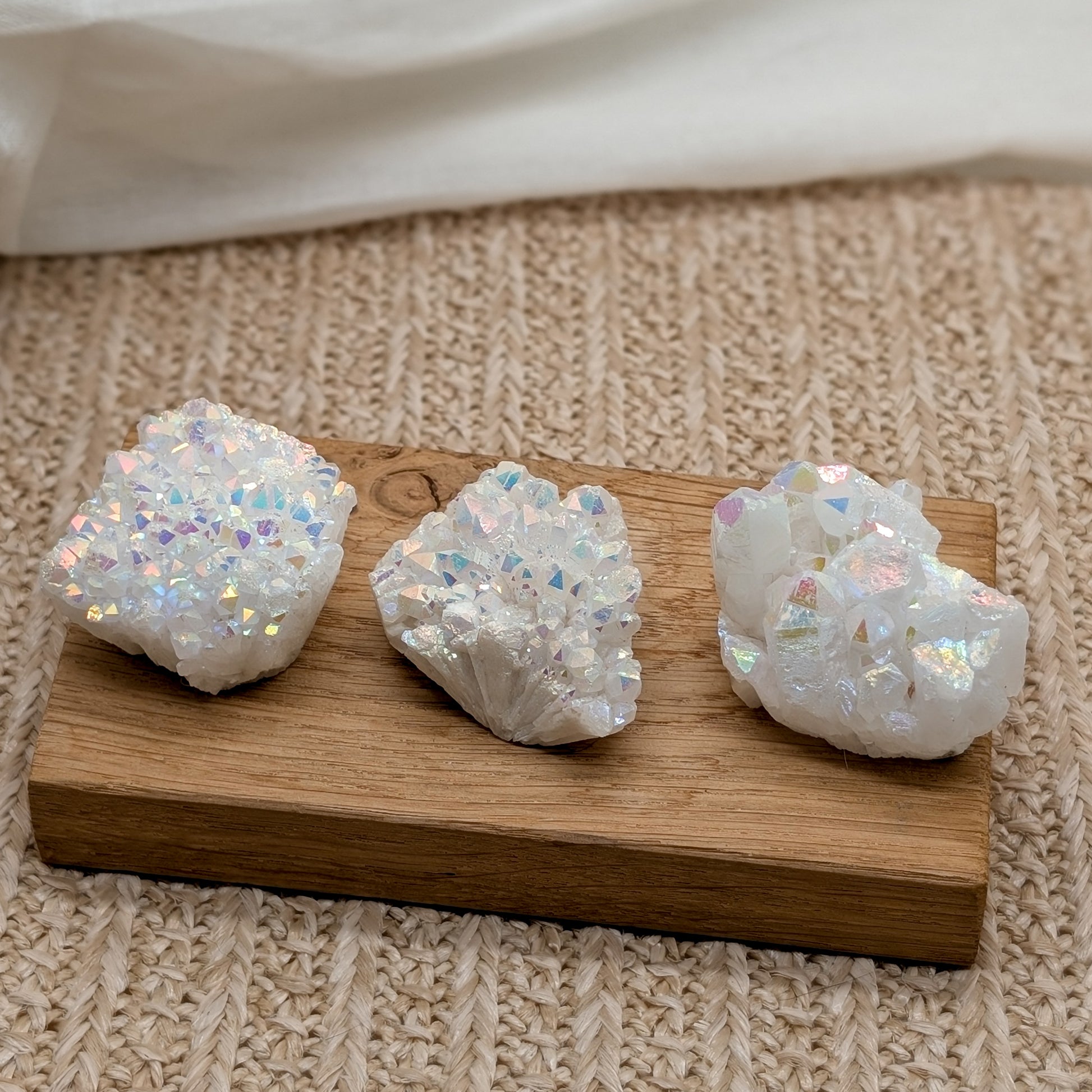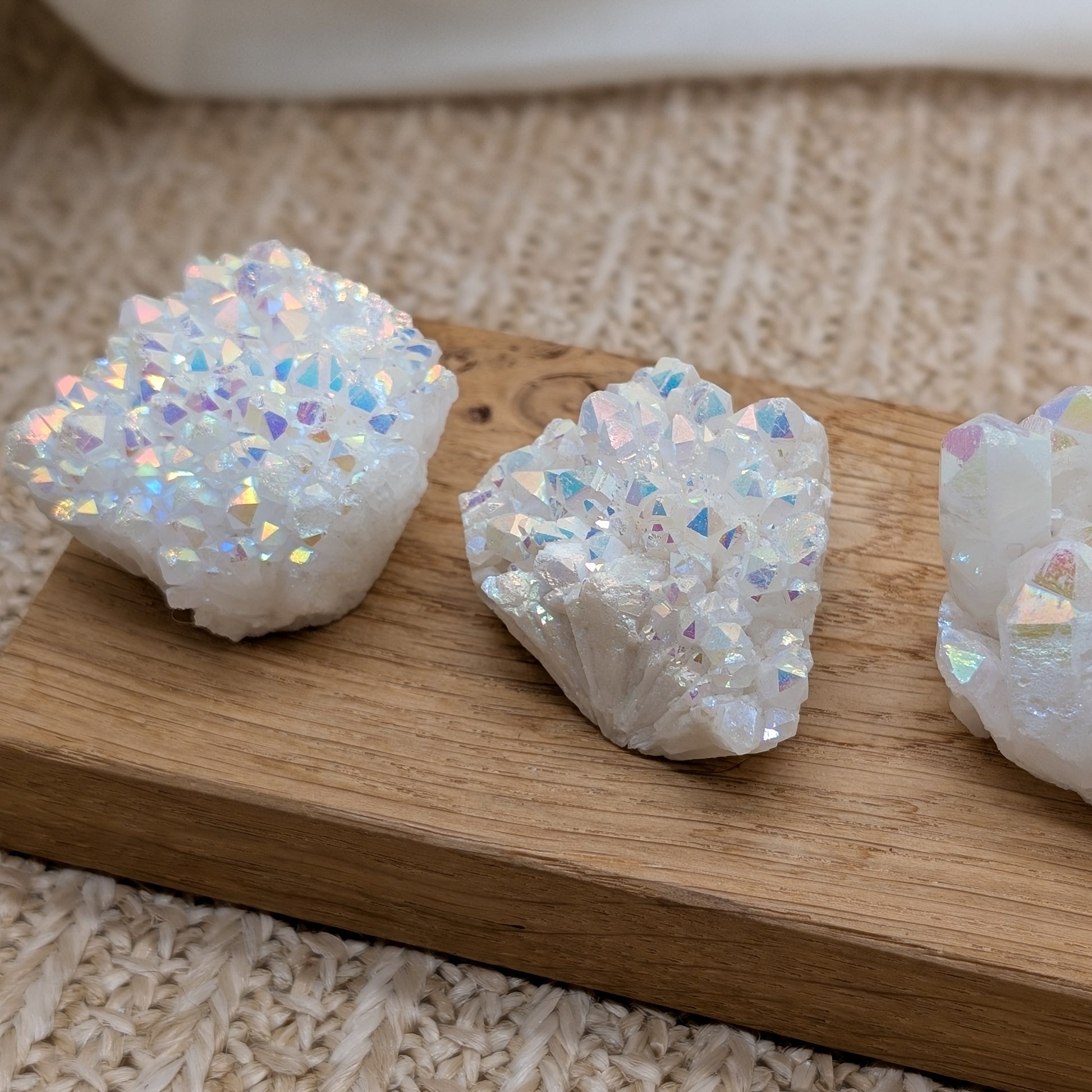 Angel Aura bezeichnet man Bergkristall, der mit Silber bedampft wurde. Dadurch erhält er den "Angel Aura" Regenbogeneffekt.