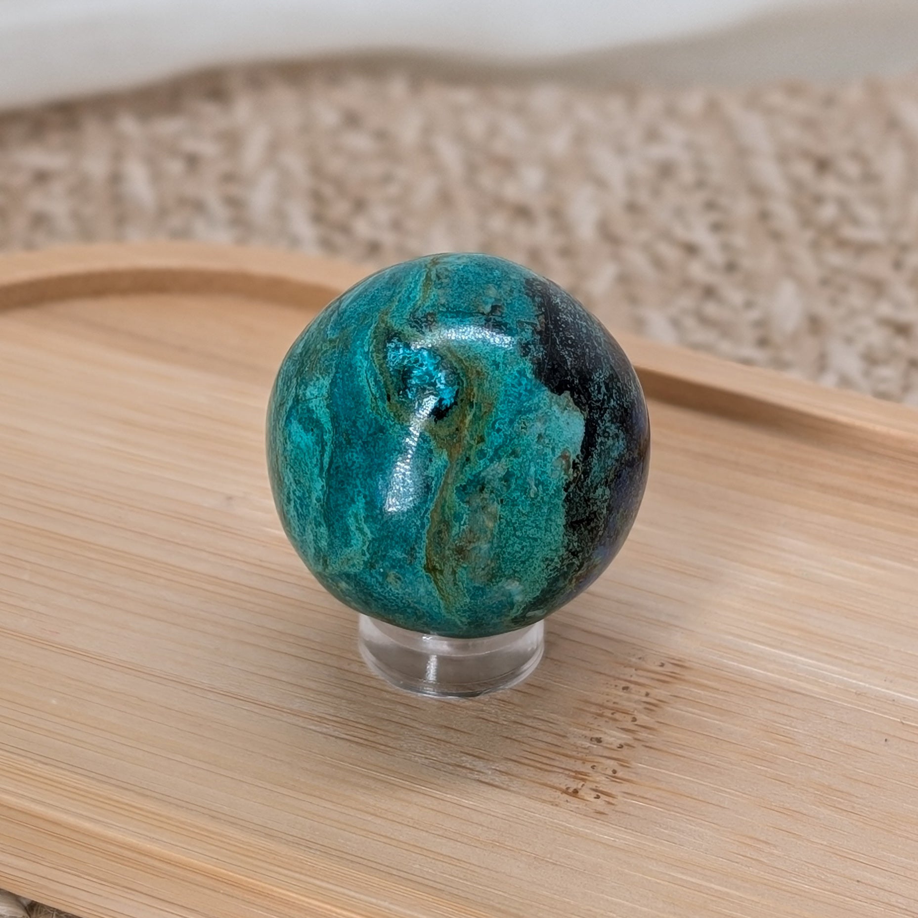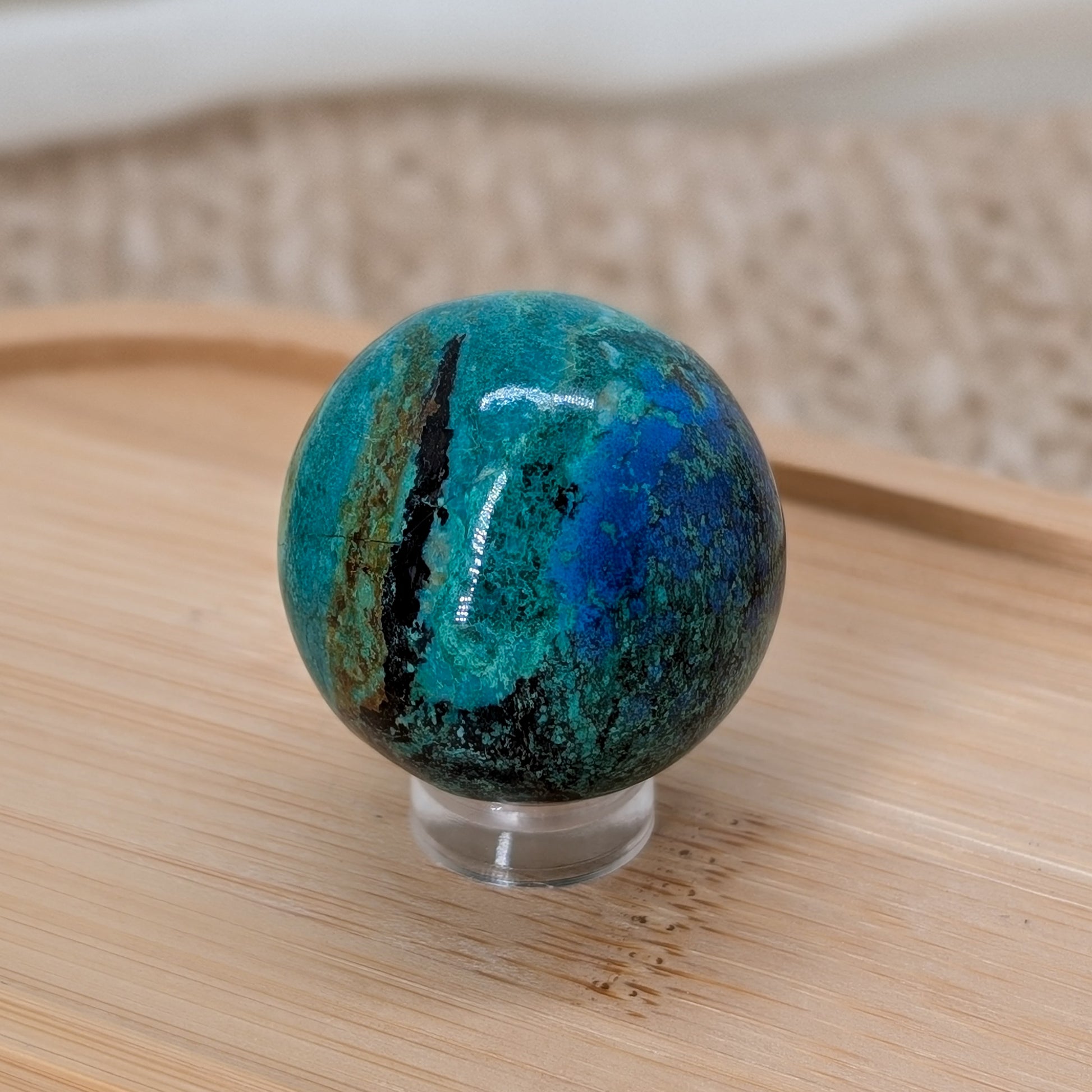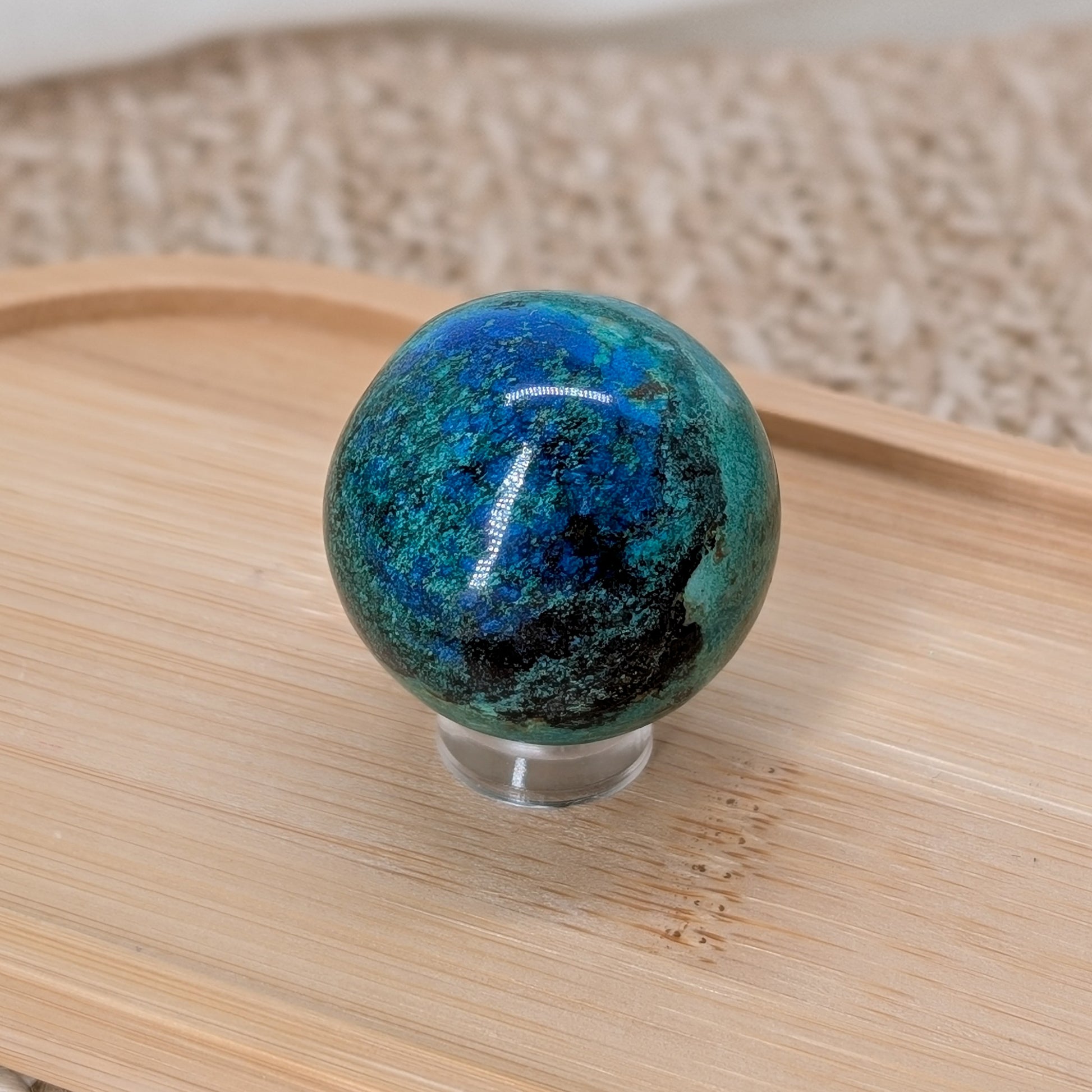 Azurit Malachit Kugel aus Peru in intensivem Grün mit blaun Akzenten 🌎