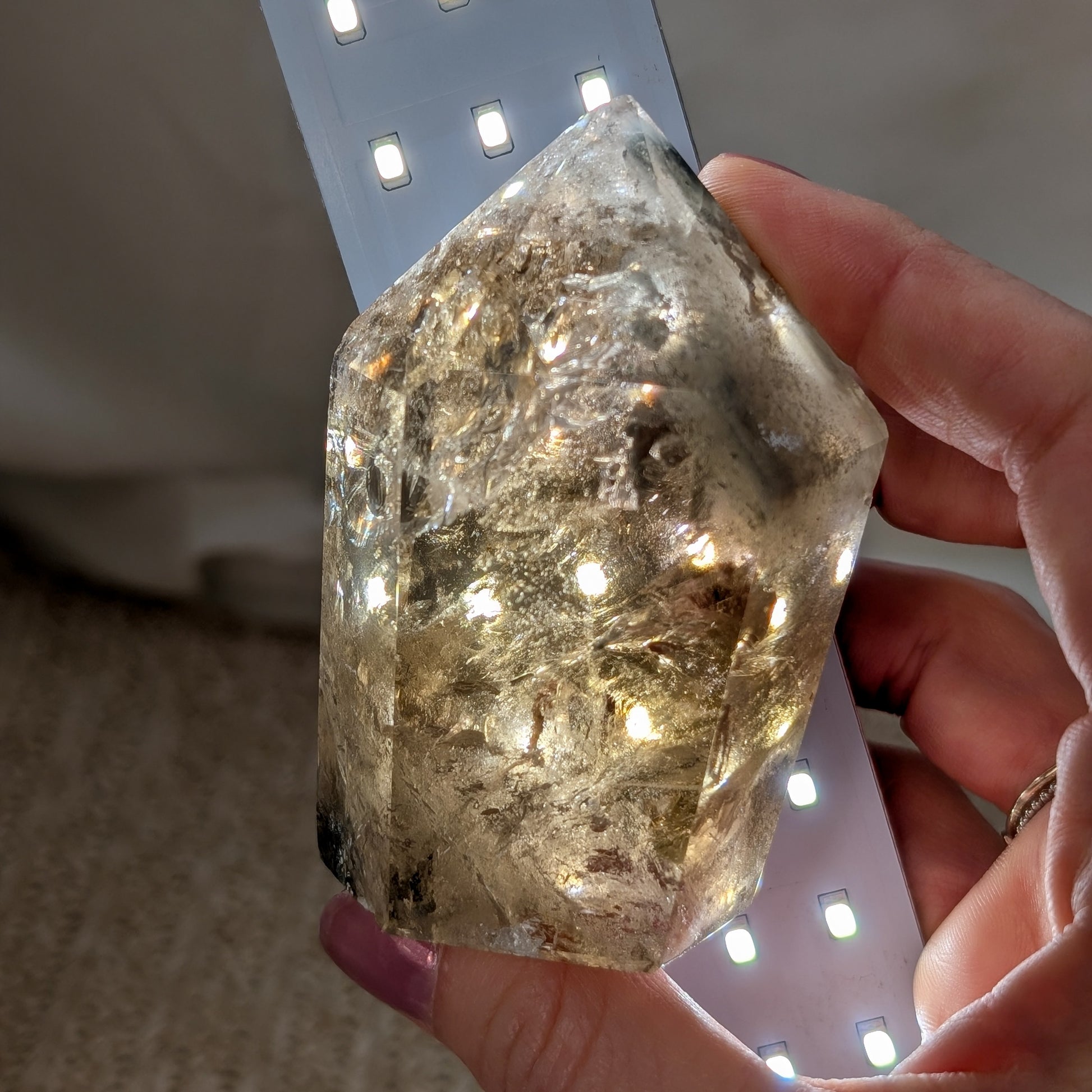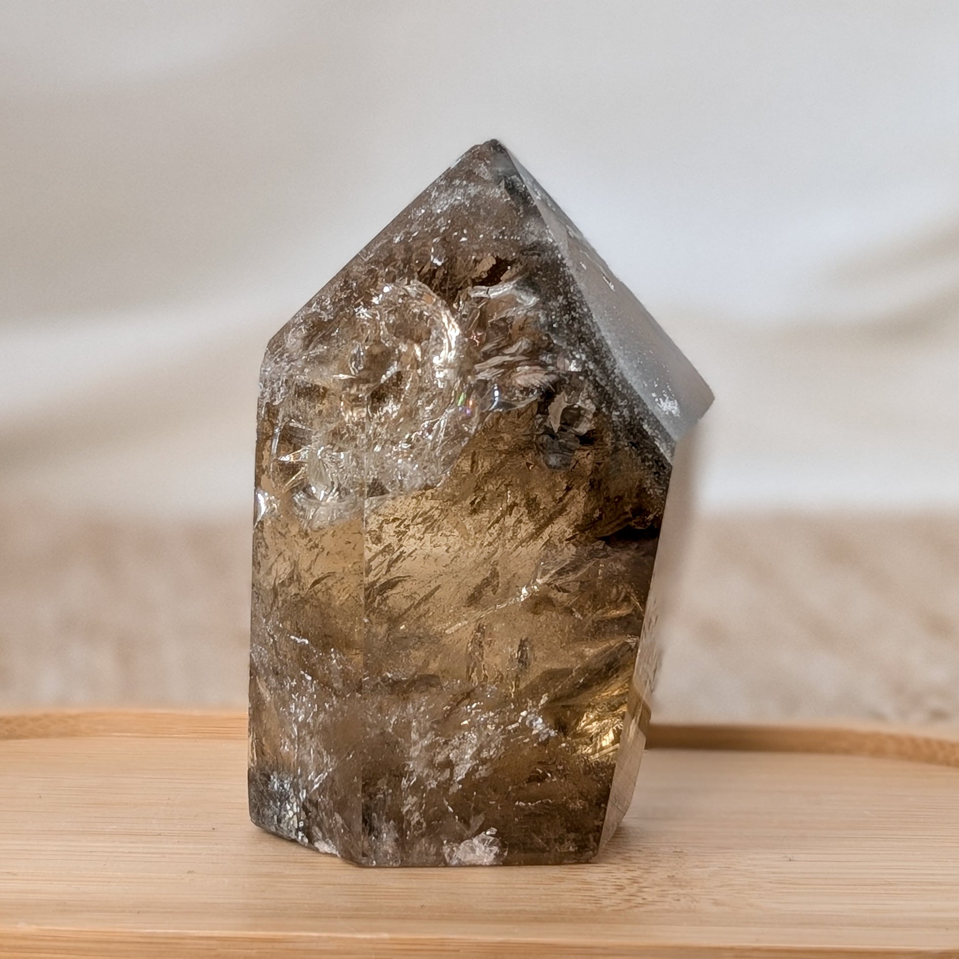 Der Turm ist stark im Preis reduziert, da er einige natürliche Einschlüsse und Unebenheiten hat, sowie eine kleine Macke an der Spitze.