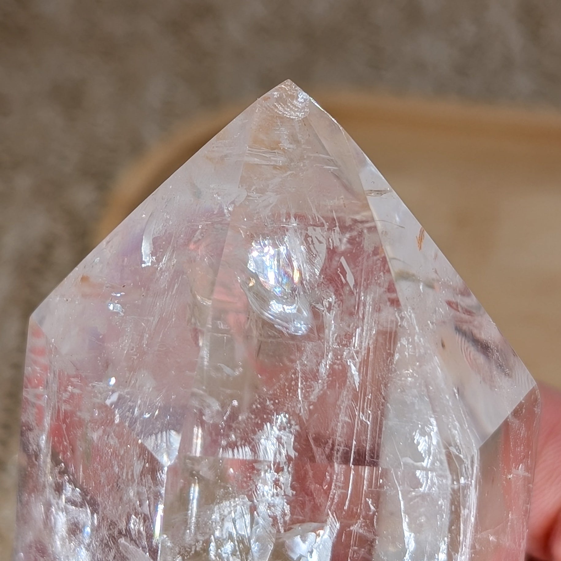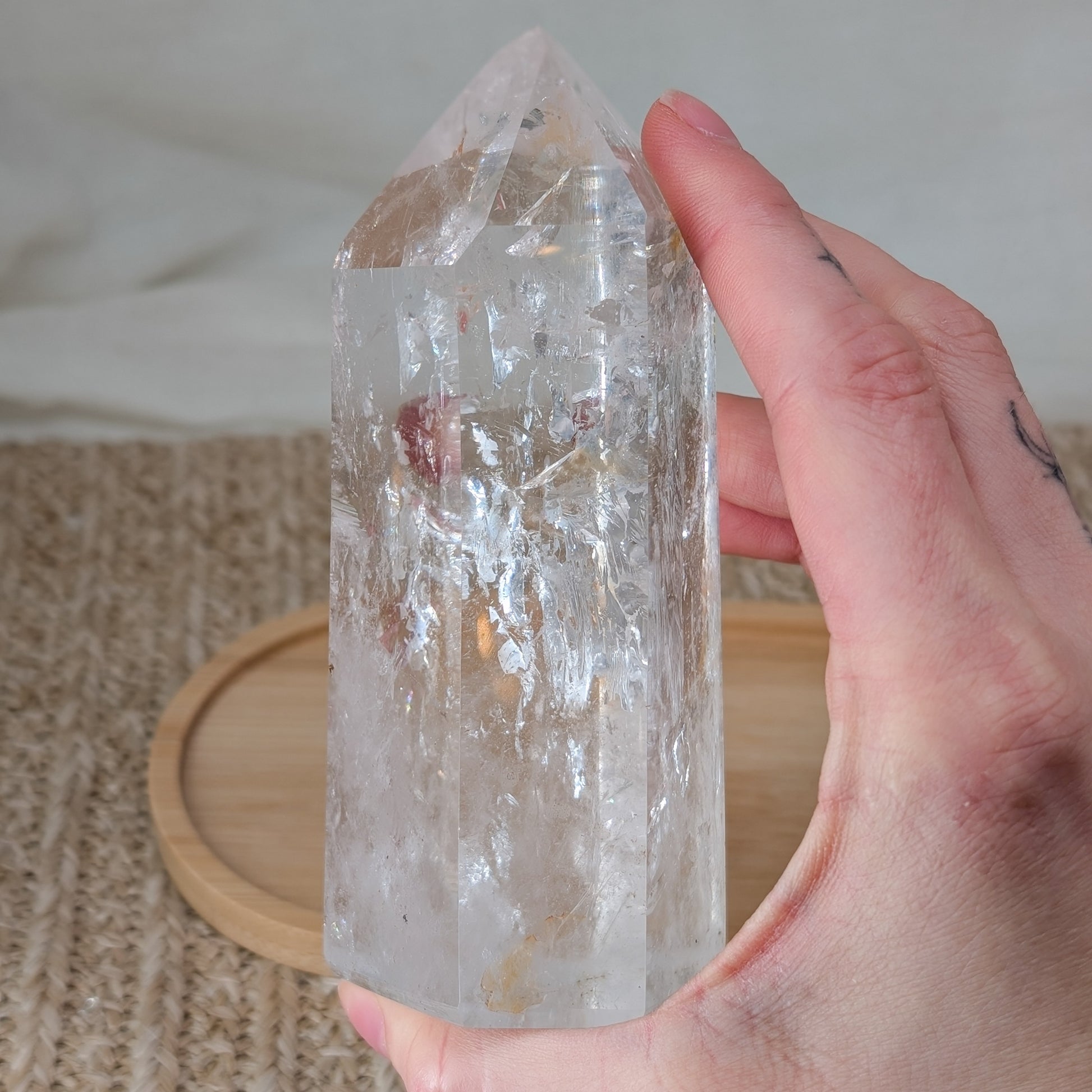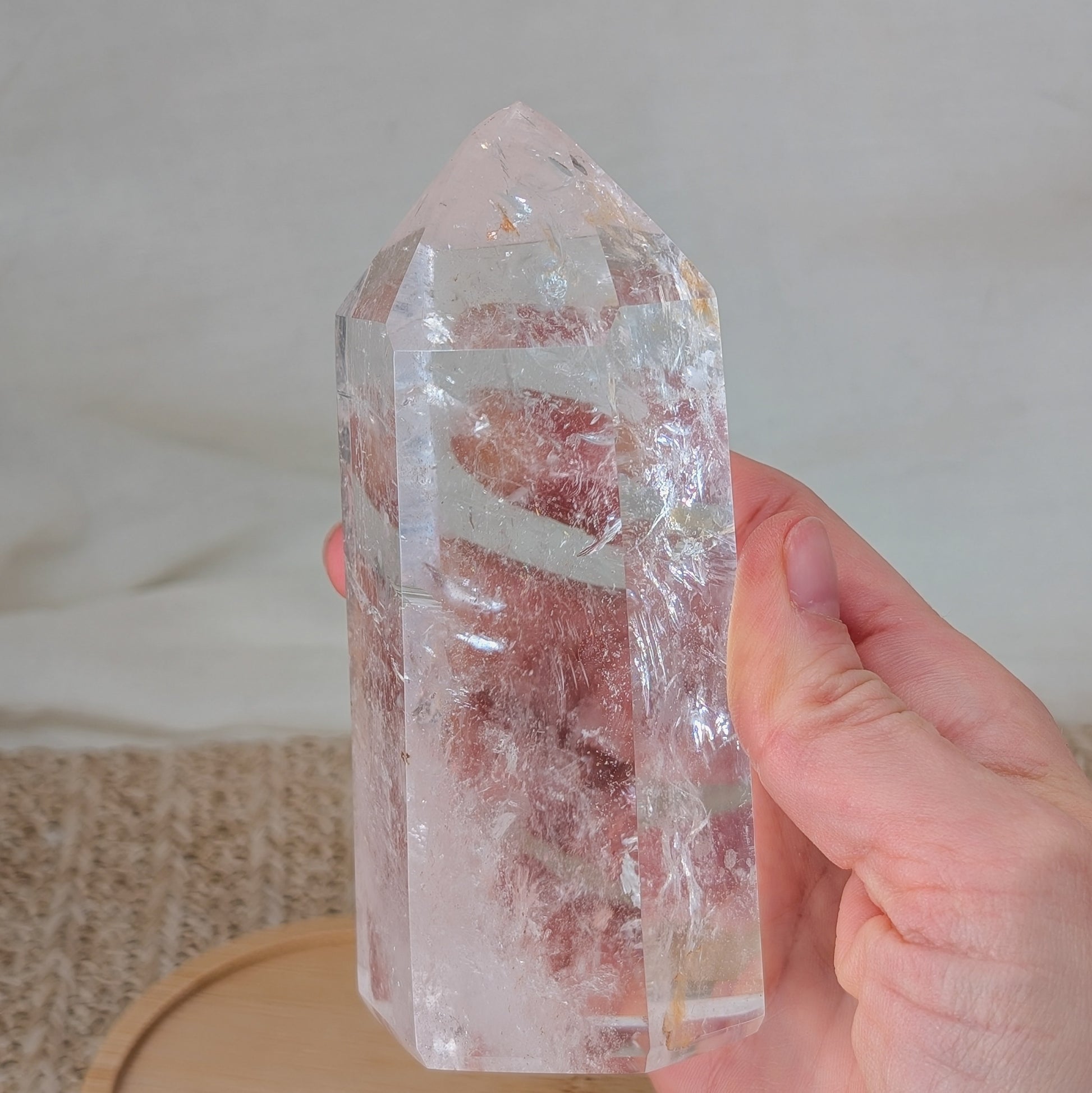 klarer Bergkristall Turm mit schönem Innenleben und Schimmer