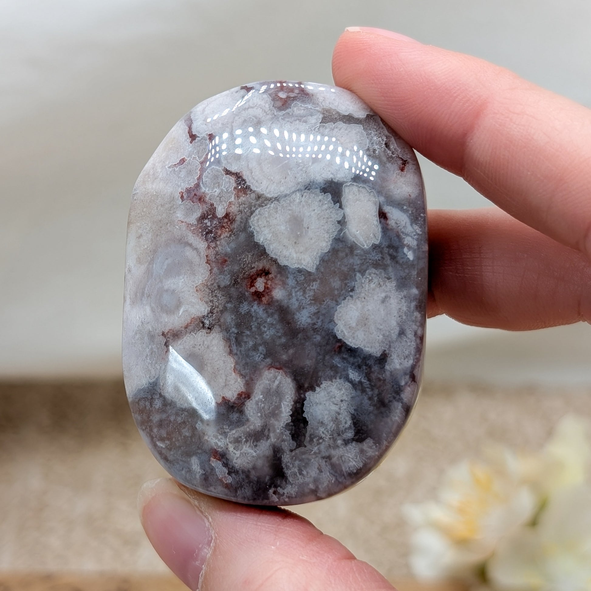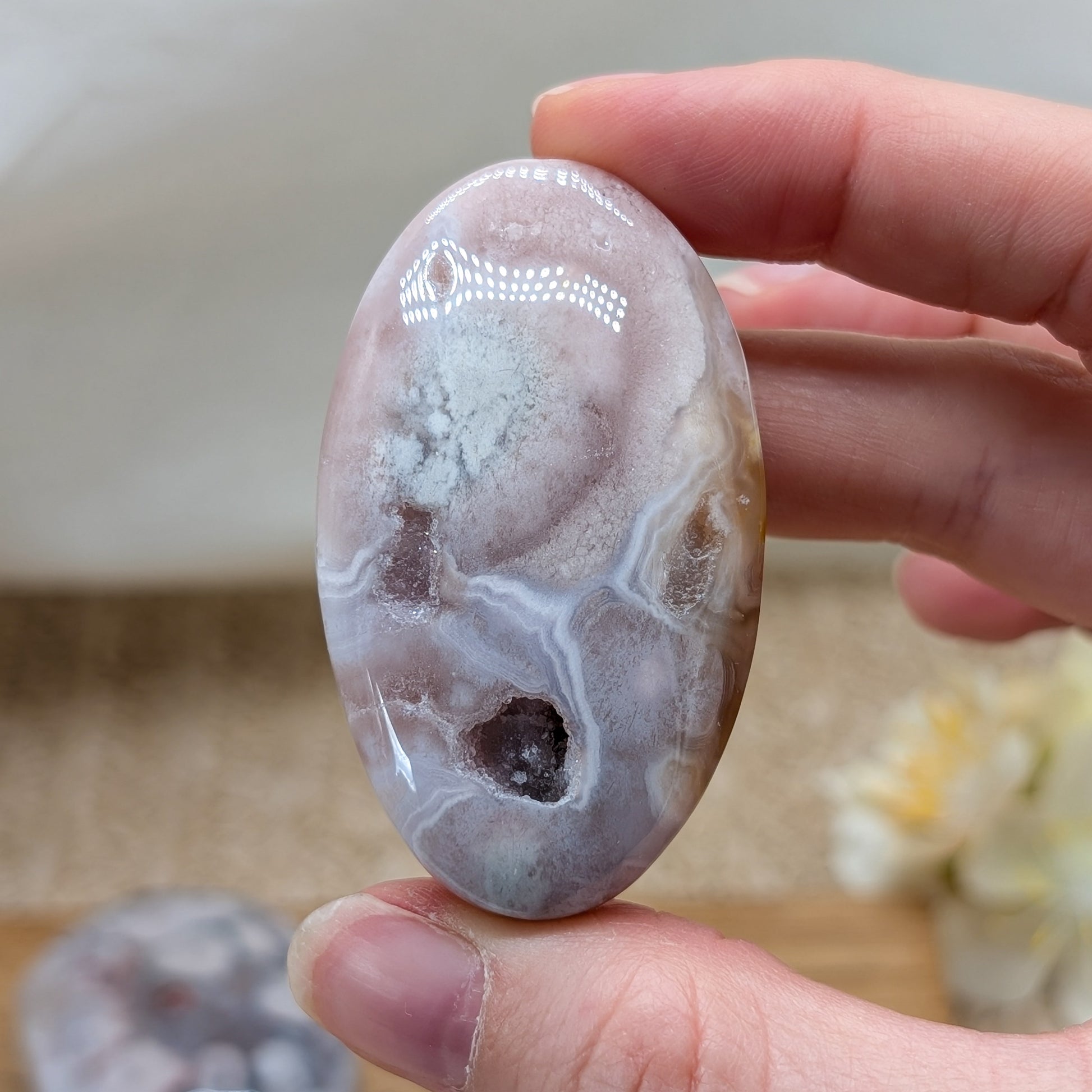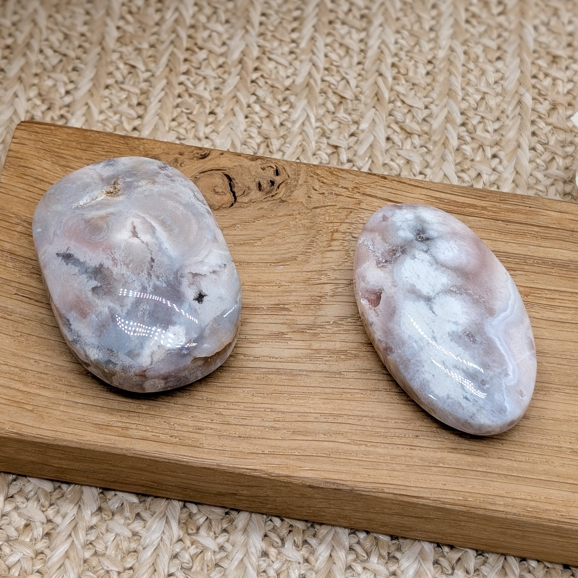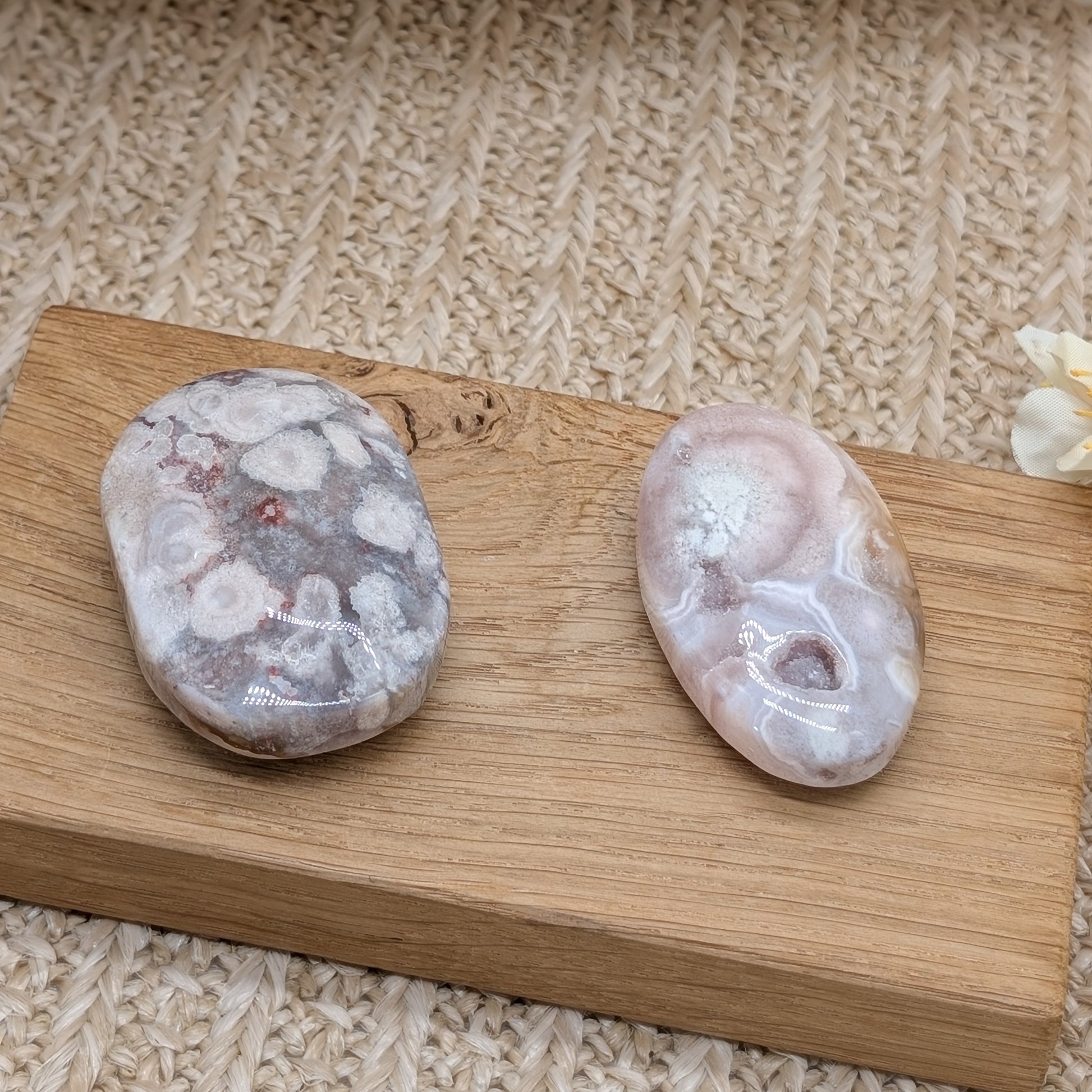 Blumenachat Handstein in zwei Varianten. (Variante B mit Drusen)