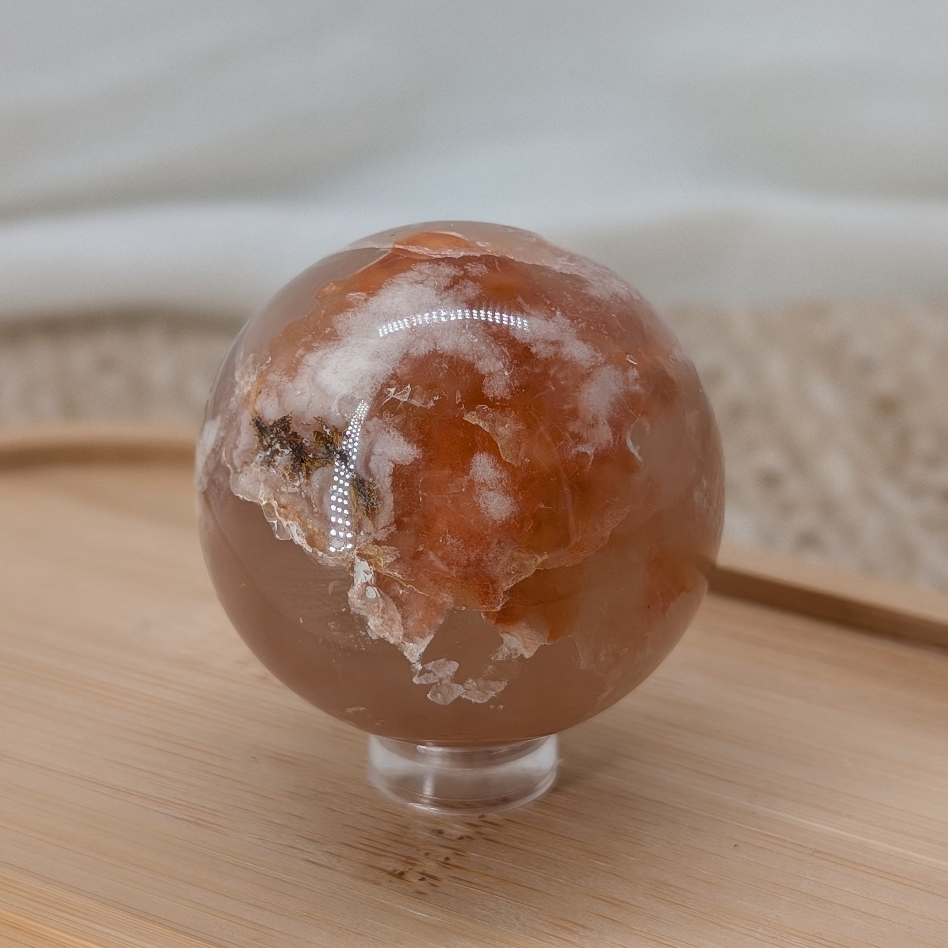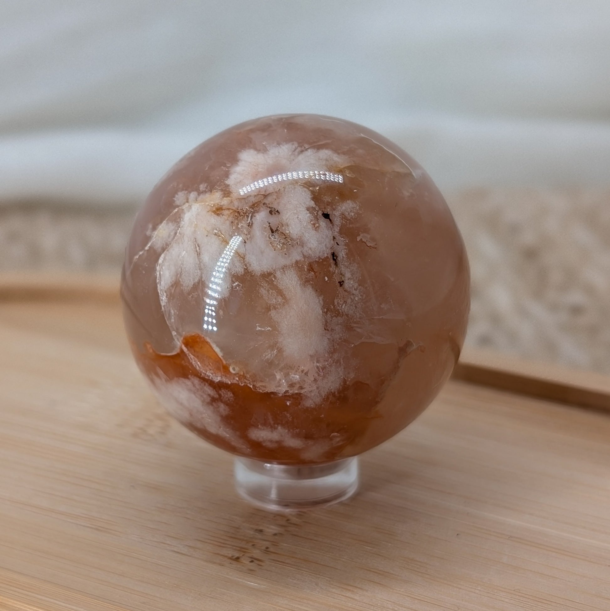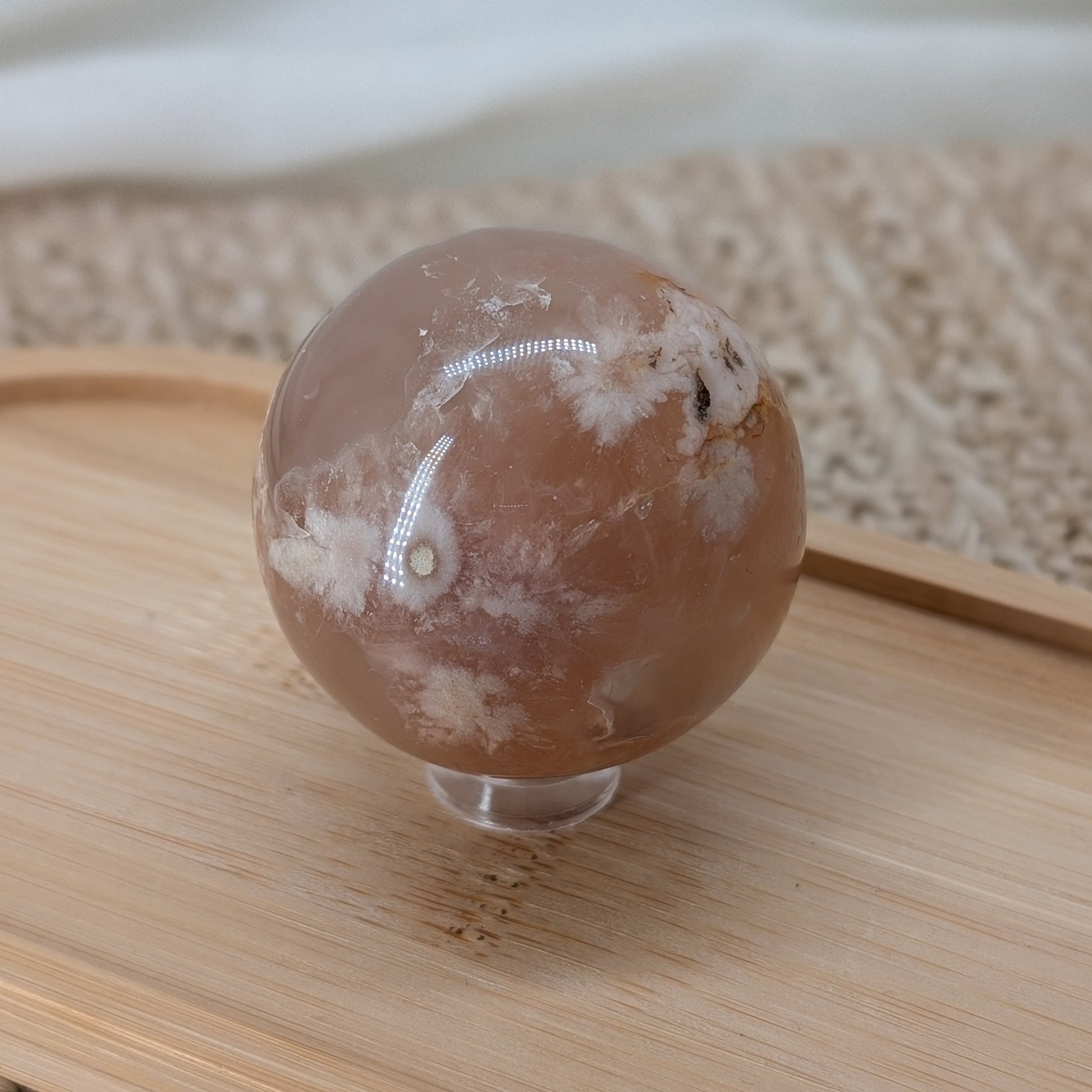 Blumenachat Kugel in Jelly Qualität in pfirsisch / beige Farbe mit zarten hellen und etwas dunklerem Blumenmuster