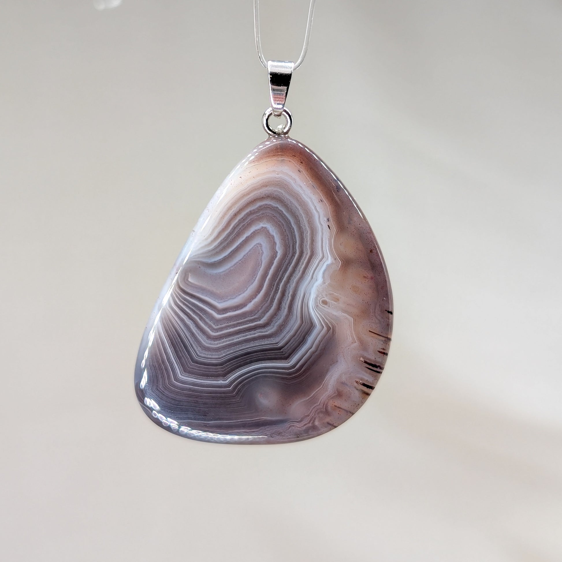 Botswana Achat Kettenanhänger mit schöner Bänderung – mit rhodinierter Öse aus 925er Silber