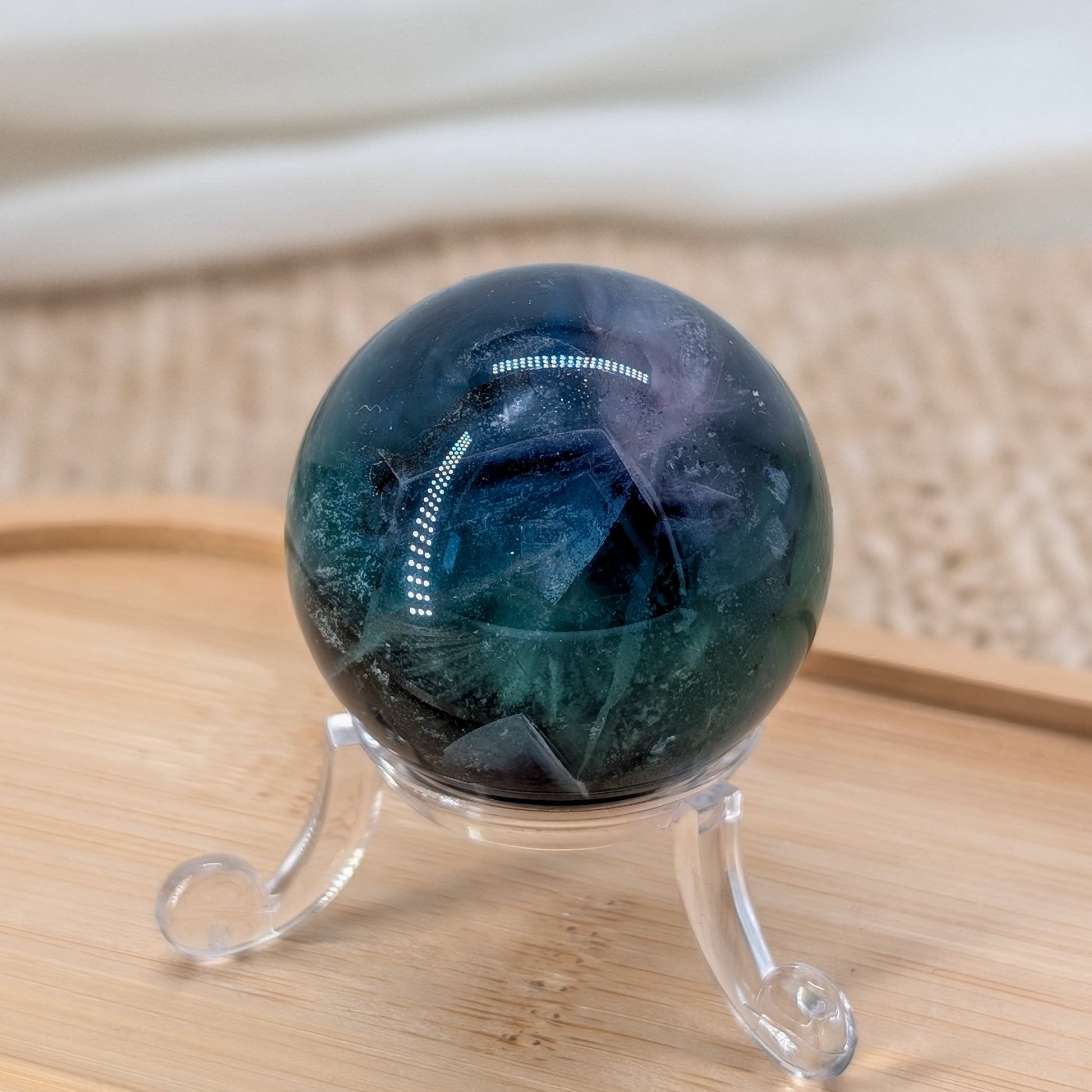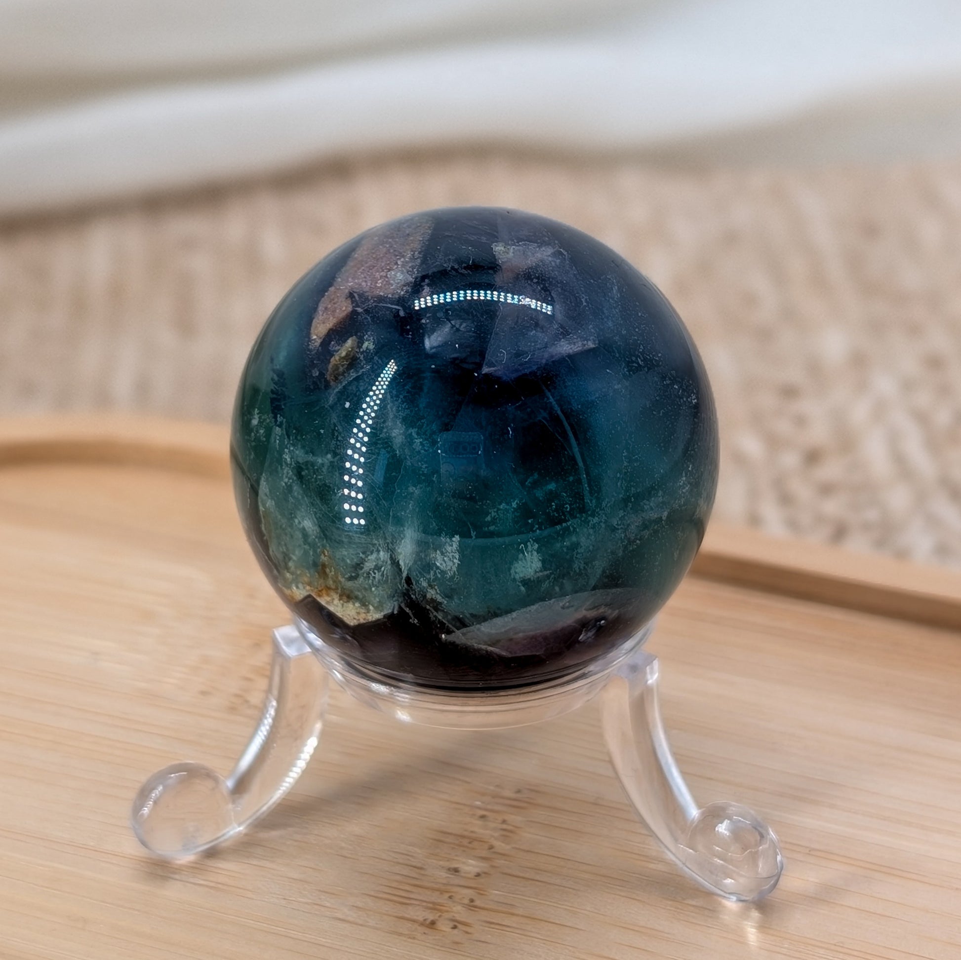 Aufgrund der dunklen Einschlüsse ist die Kugel im Preis reduziert.