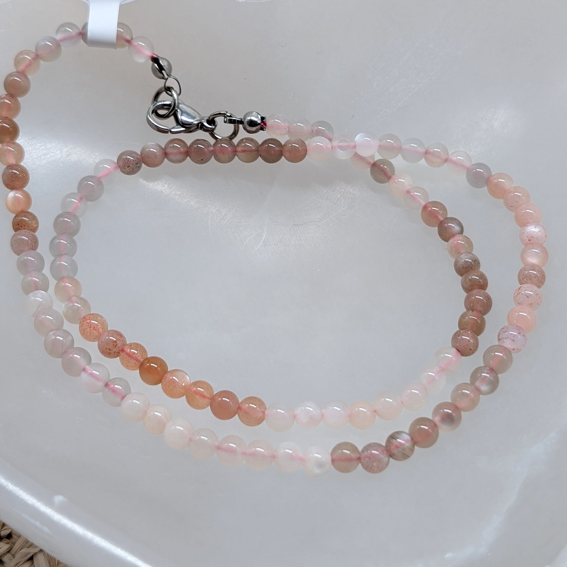 Schimmernde bunte Mondstein Halskette mit Perlen Edelstahl Verschluss in zwei Varianten: