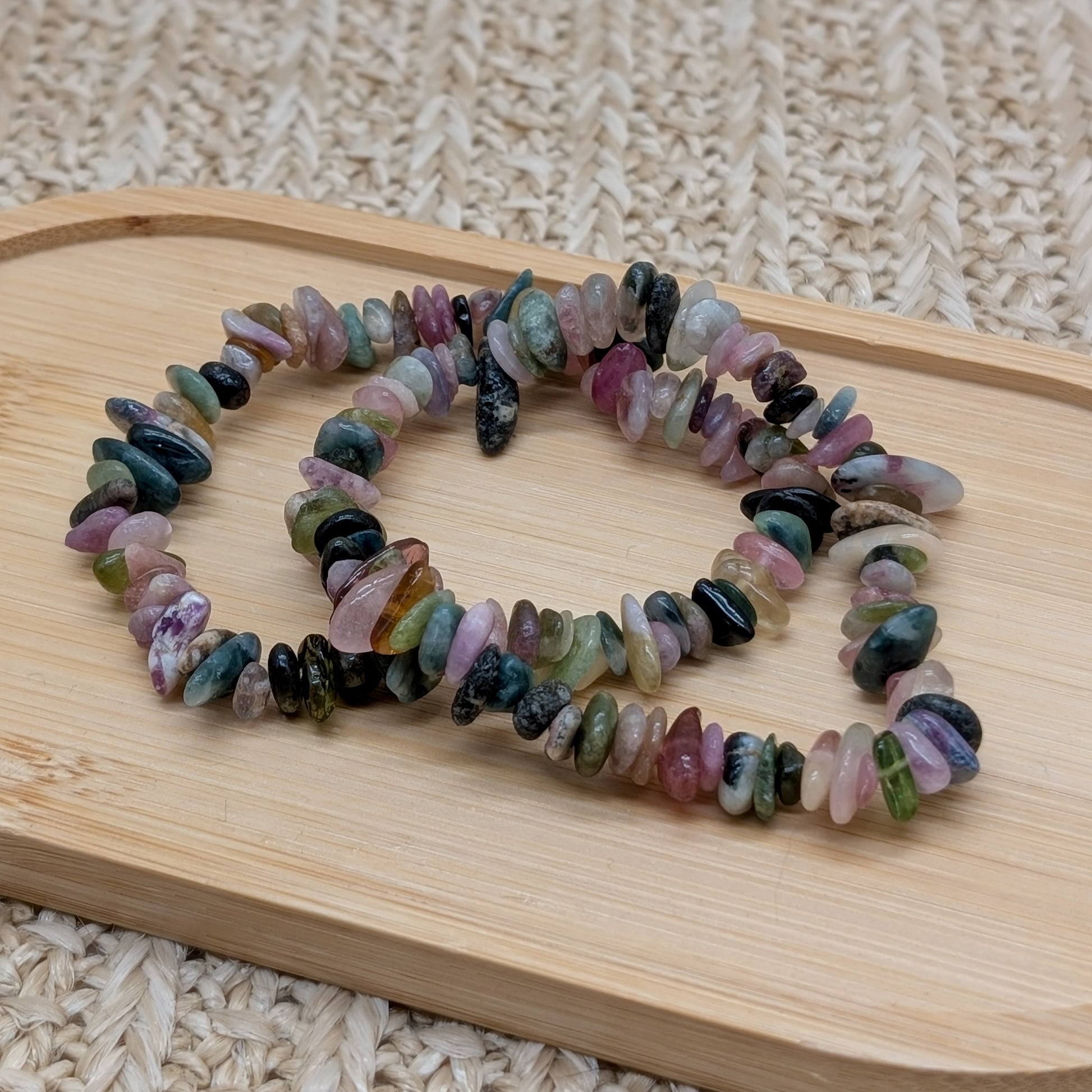 Farbenfrohes Splitterarmband aus buntem Turmalin.
