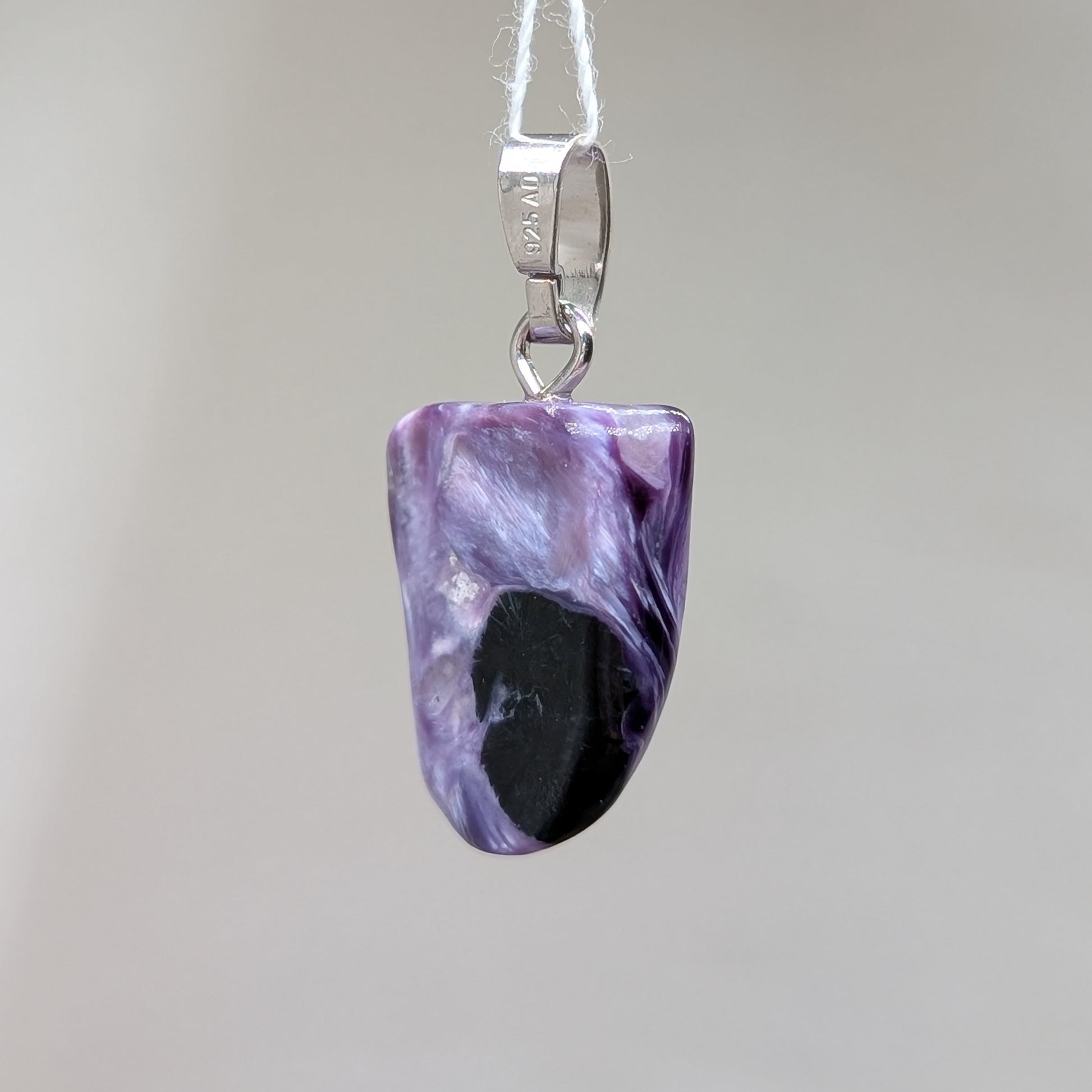Charoit Kettenanhänger mit Öse aus 925er Silber in sehr hoher Steinqualität und schönem schimmerndem Lila