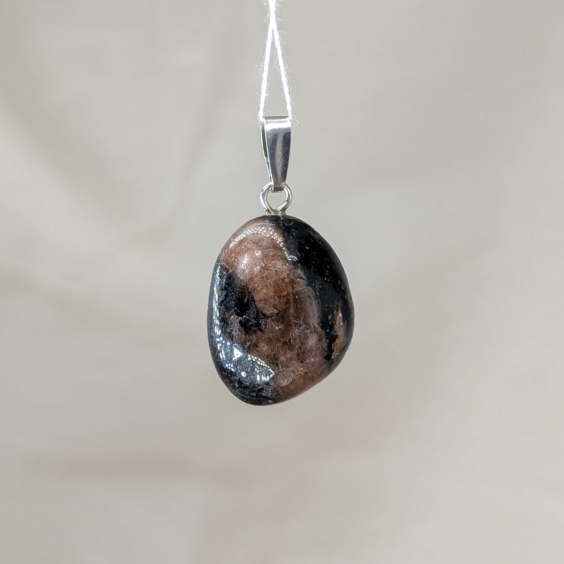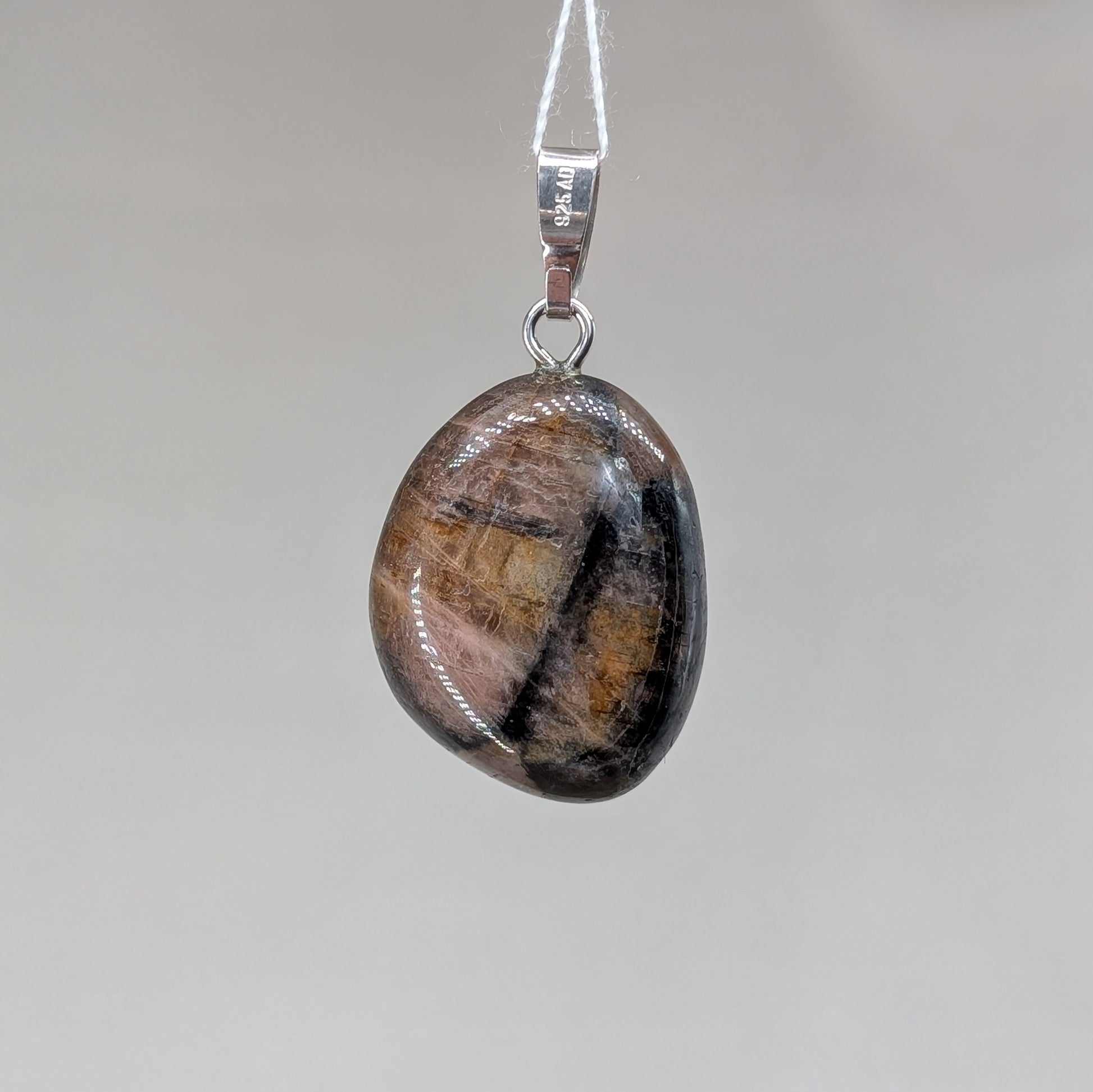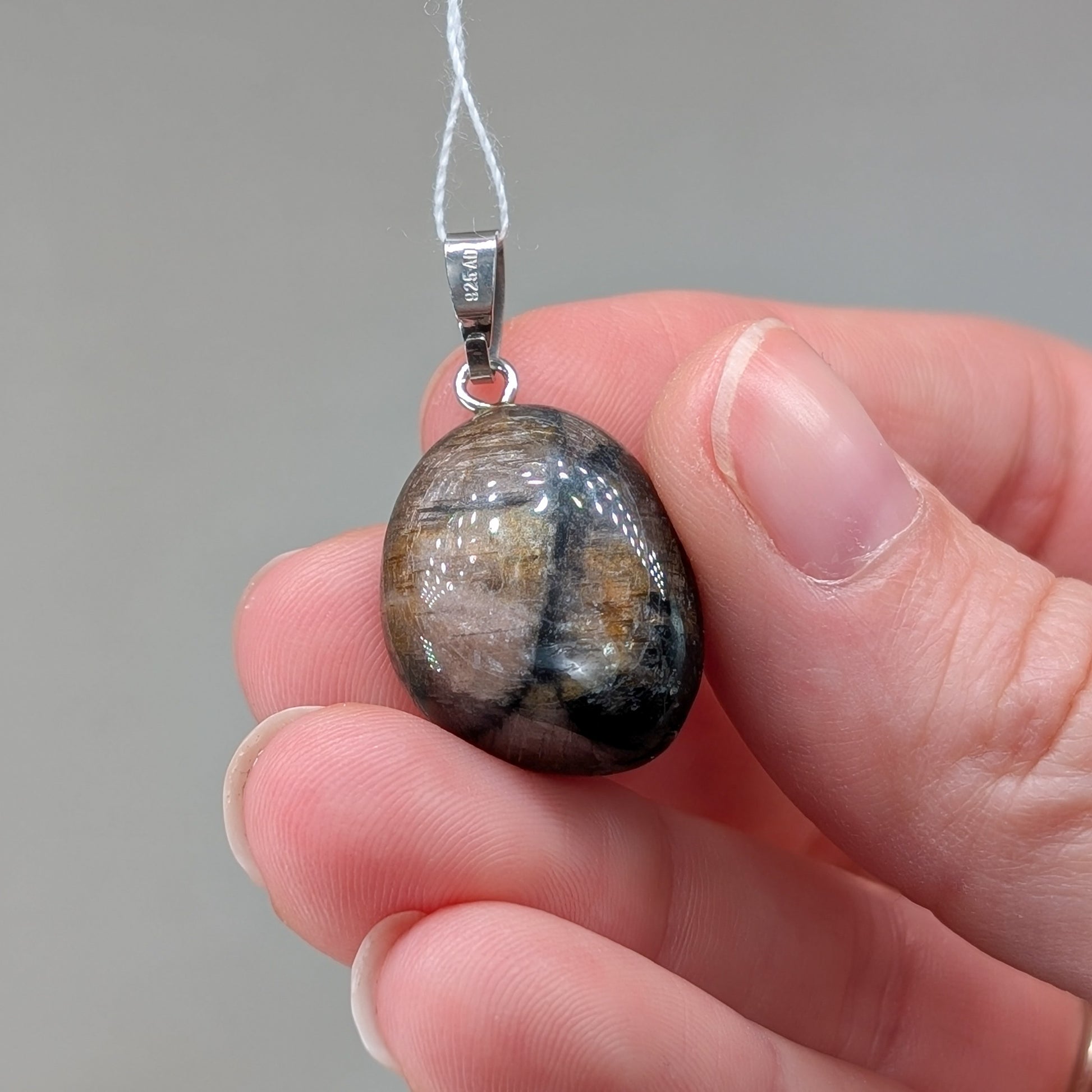 Schimmernder Chiastolith Kettenanhänger mit Öse aus 925er Silber.