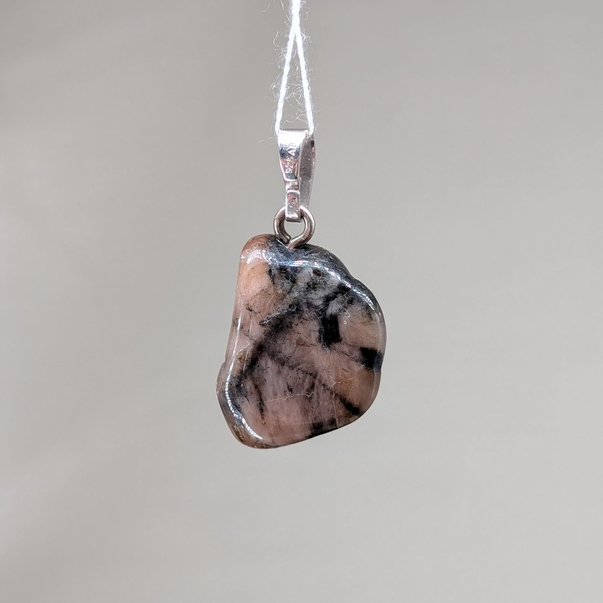 Chiastolith Kettenanhänger in braun schwarz mit dem für den Stein typischen Kreuzmuster