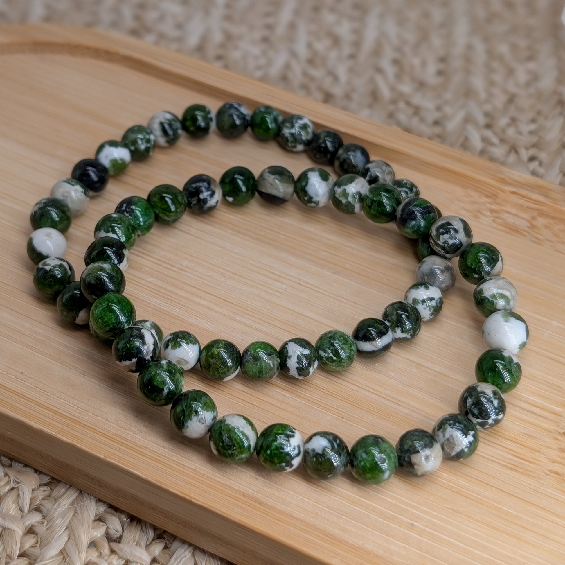 Chromdiopsid Armband mit in glitzerndem Grün und Weiß.