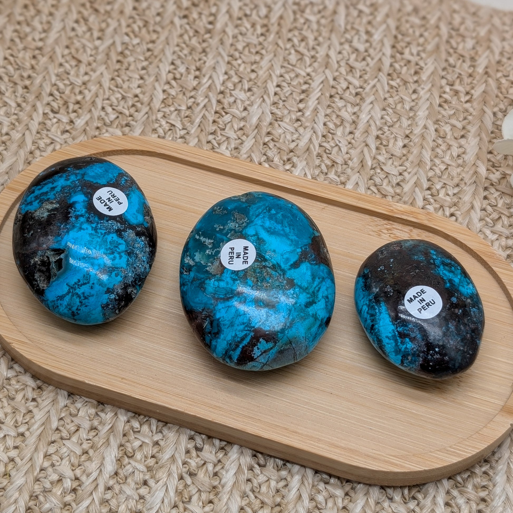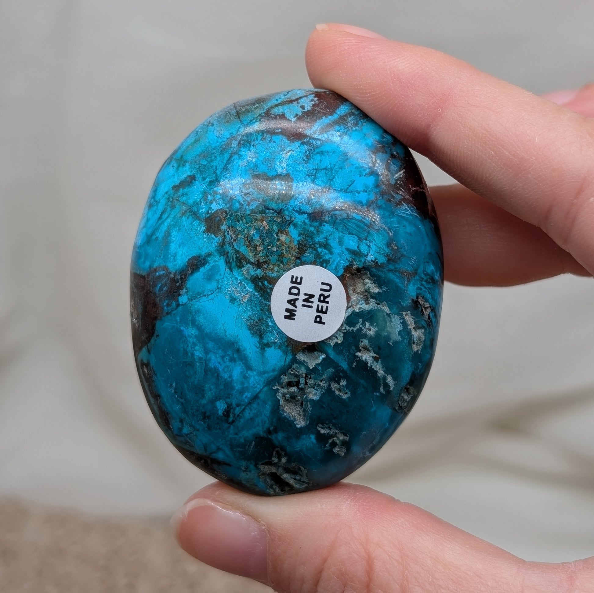 Intensiv grün-blauer Chrysokoll Handstein aus Peru, verfügbar in 3 Varianten: