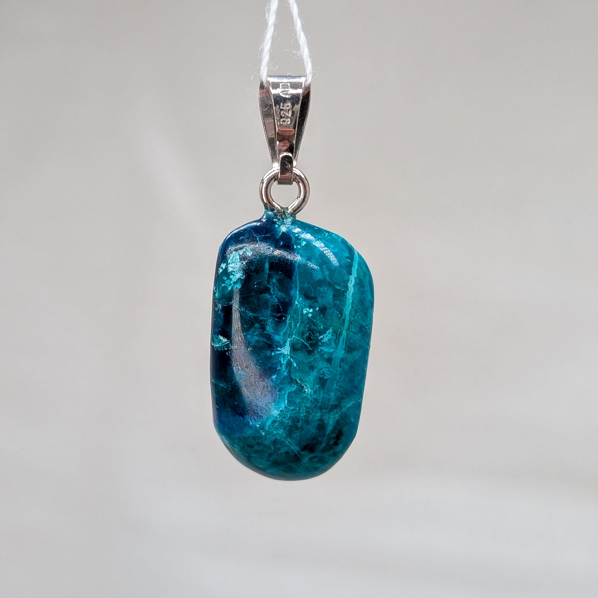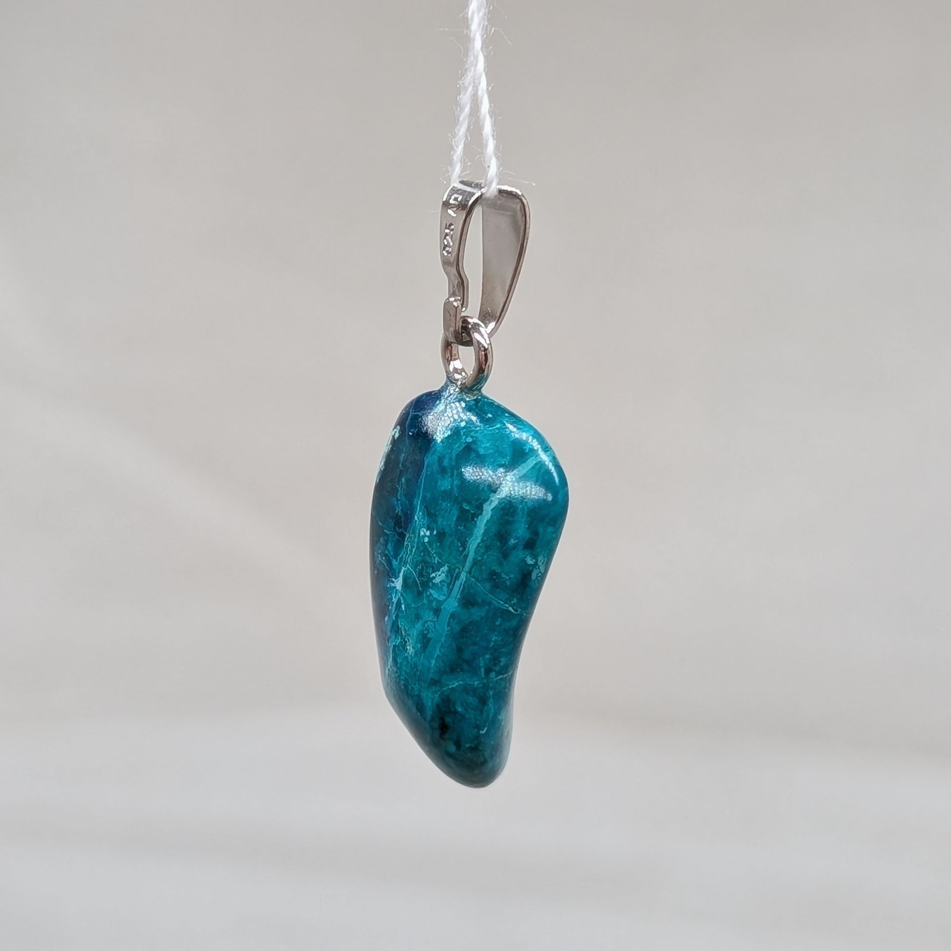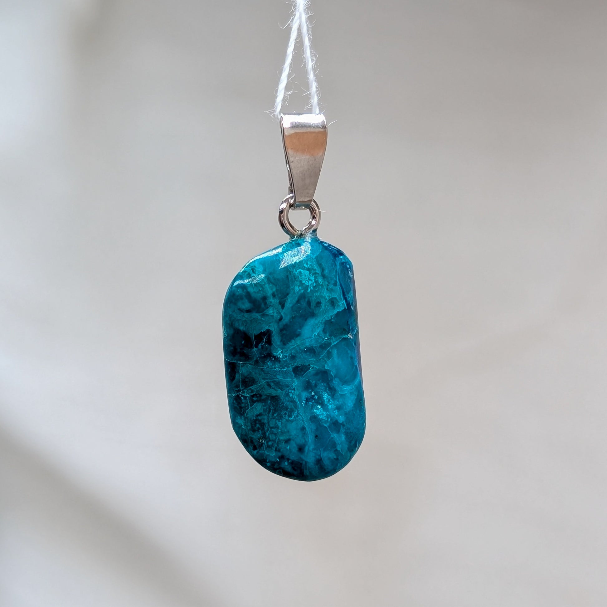 Chrysokoll Kettenanhänger in intensivem blau-türkis mit Öse aus 925er Silber.