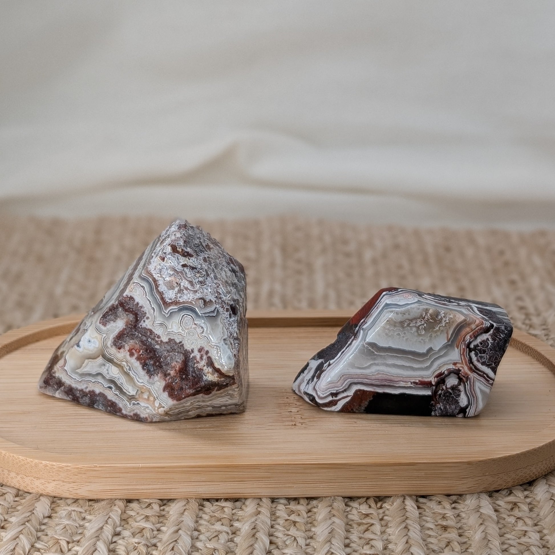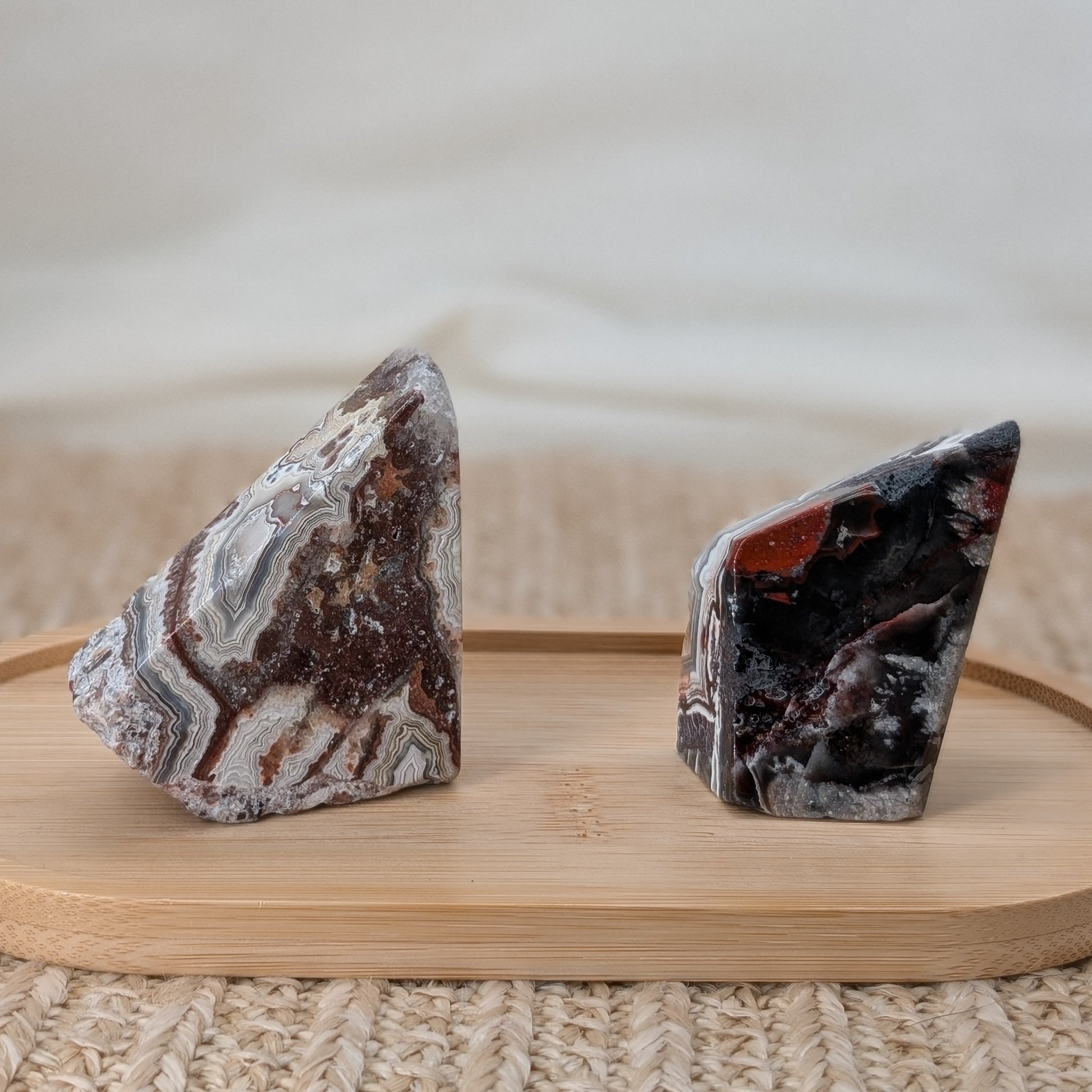 Intensiv gemusterte Crazy Lace Achat Freiform in 2 Varianten: