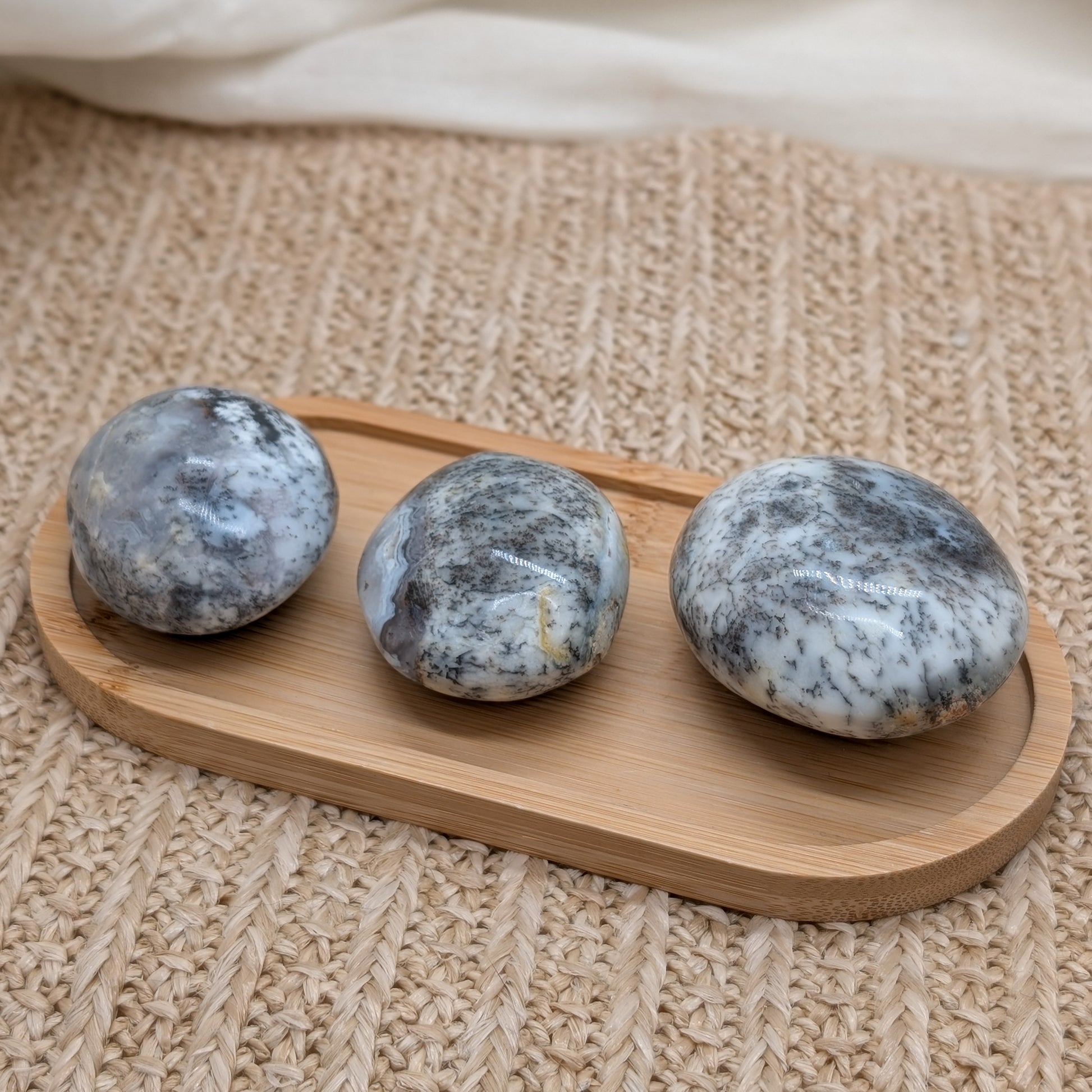 Dendriten Opal Handstein mit schöner Musterung und Einschlüssen. Verfügbar in drei Varianten: