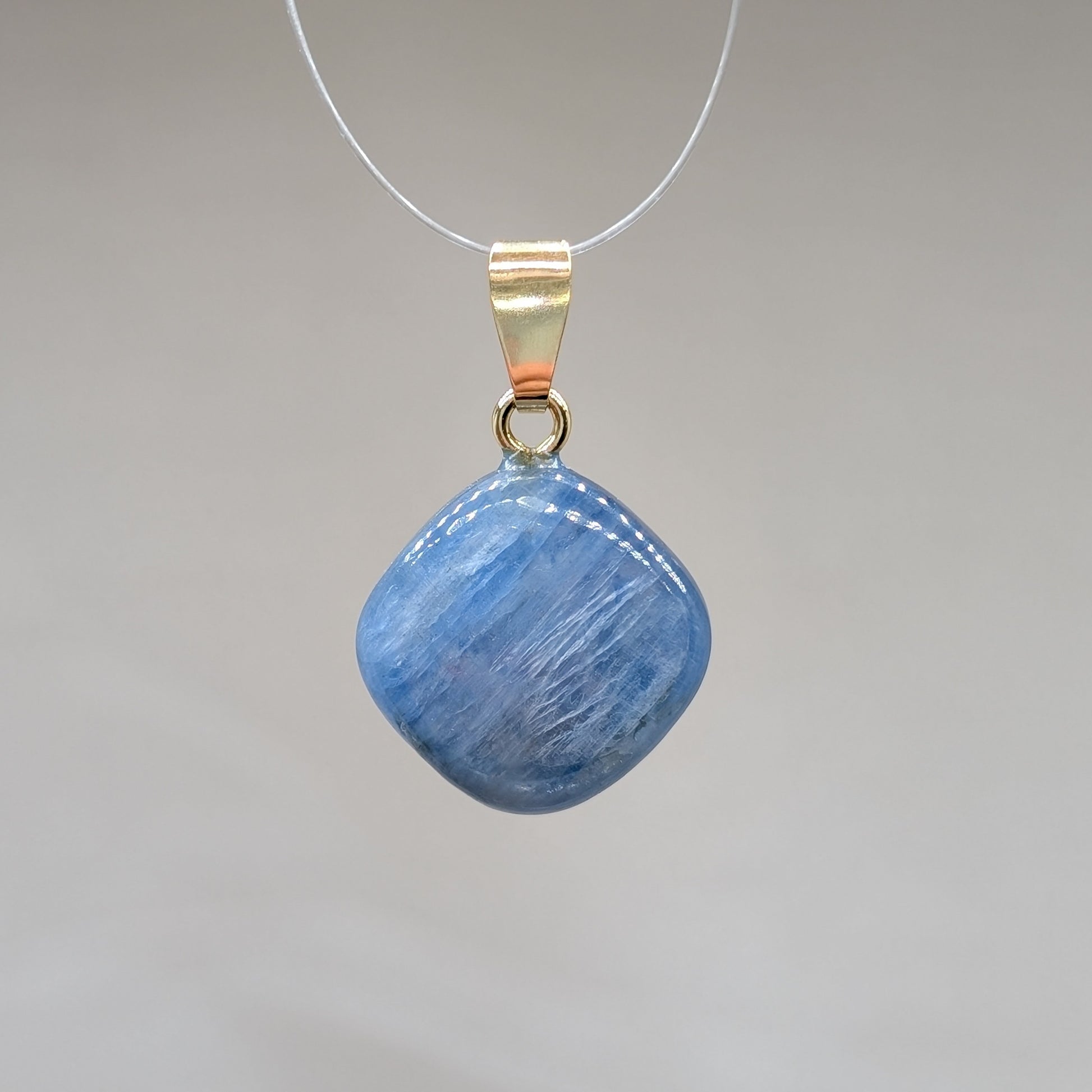 Kyani / Disthen Kettenanhänger mit Öse aus 925er Silber mit hochwertiger Vergoldung mit schönem silber blauem Flash