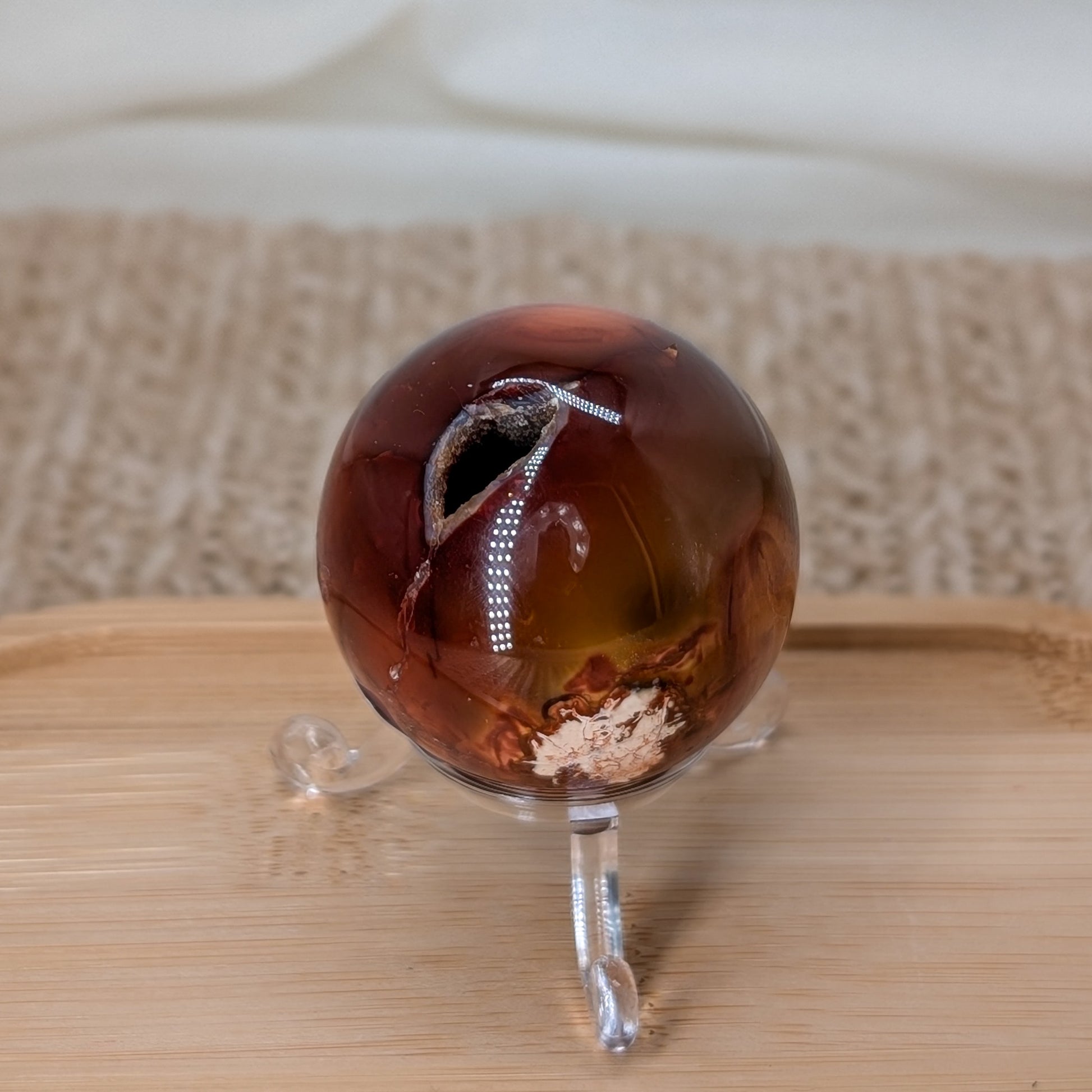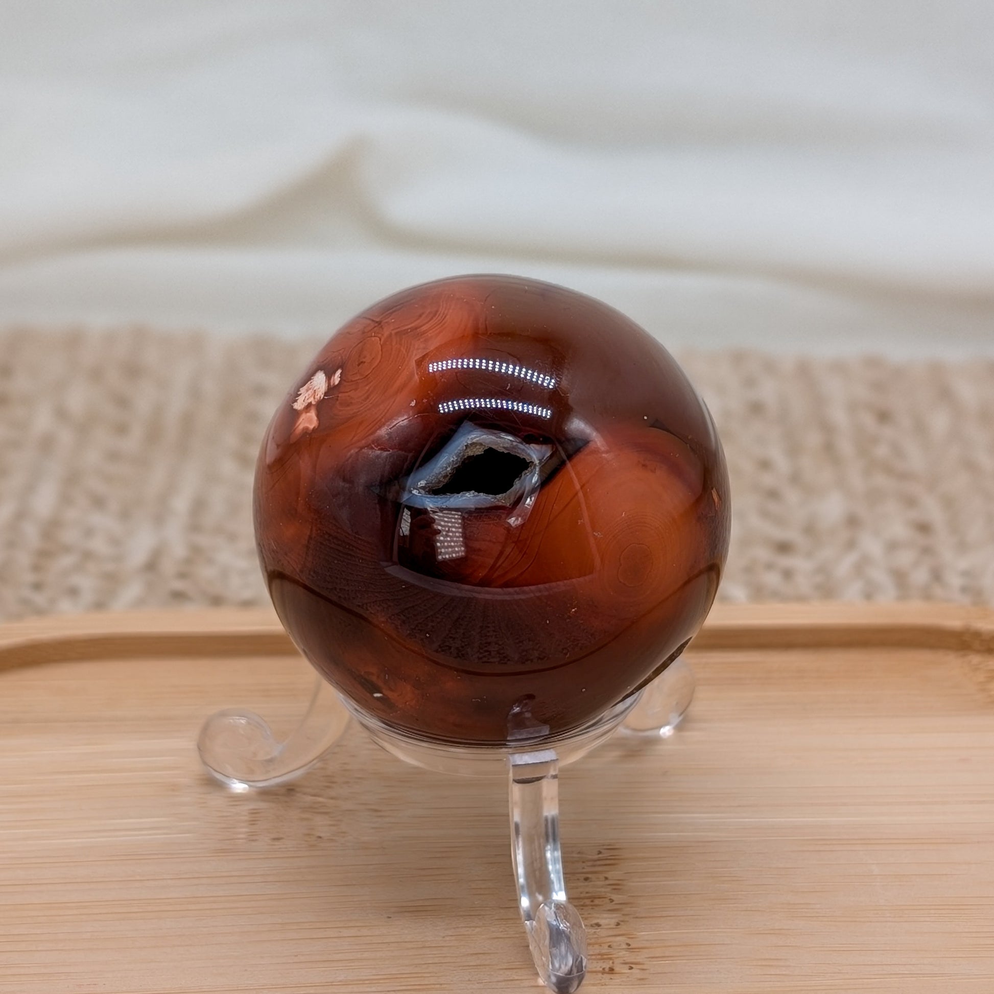 Karneol ist eine Form von Chalcedon, das aus Siliziumdioxid besteht. Chalcedon bildet sich in Hohlräumen und Spalten von vulkanischen und sedimentären Gesteinen. In diesen Hohlräumen kühlt Siliziumdioxid ab und beginnt zu kristallisieren. Die typische Farbe erhält der Karneol durch Eisenoxidpartikel in der Kristallstruktur.