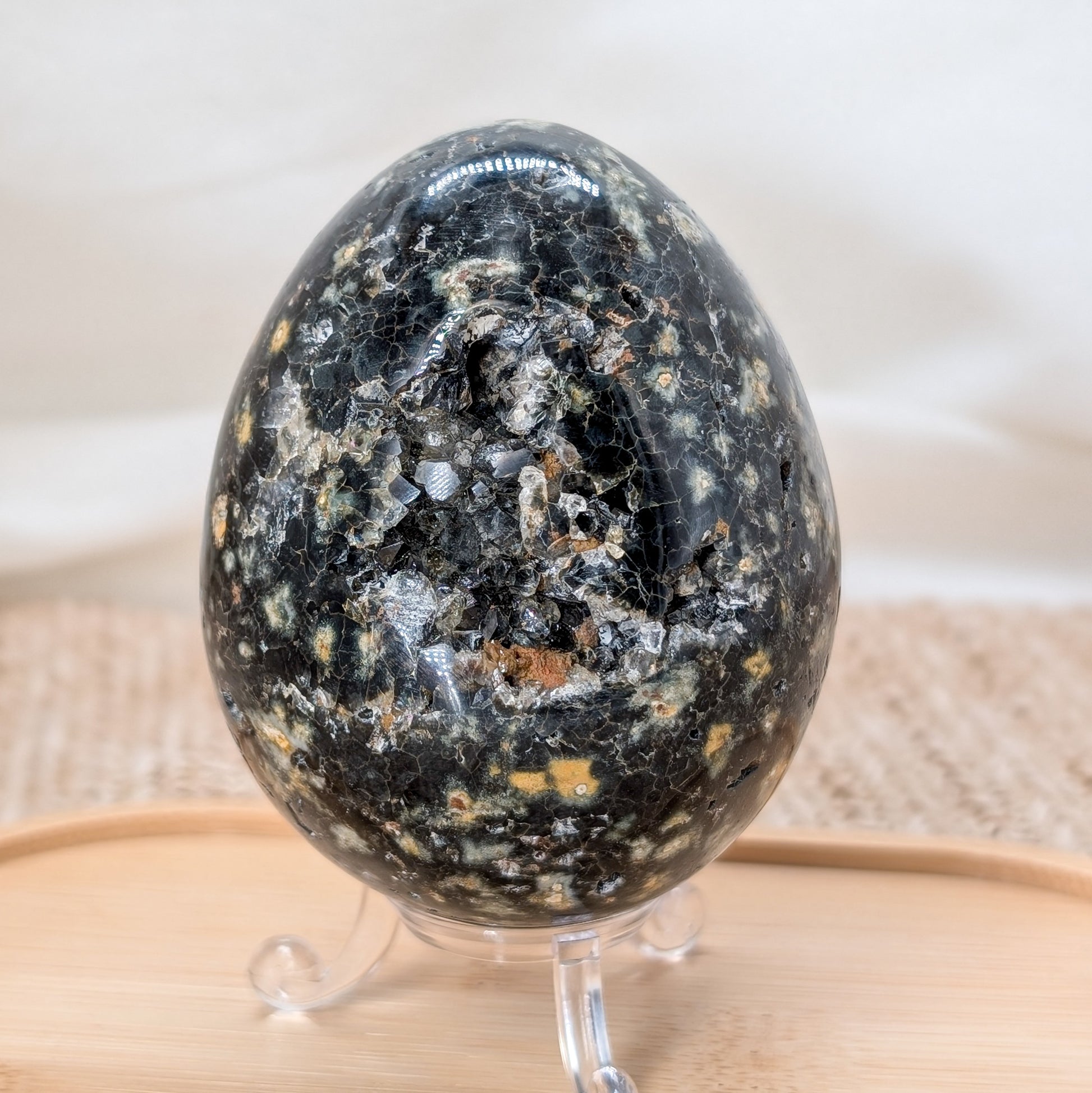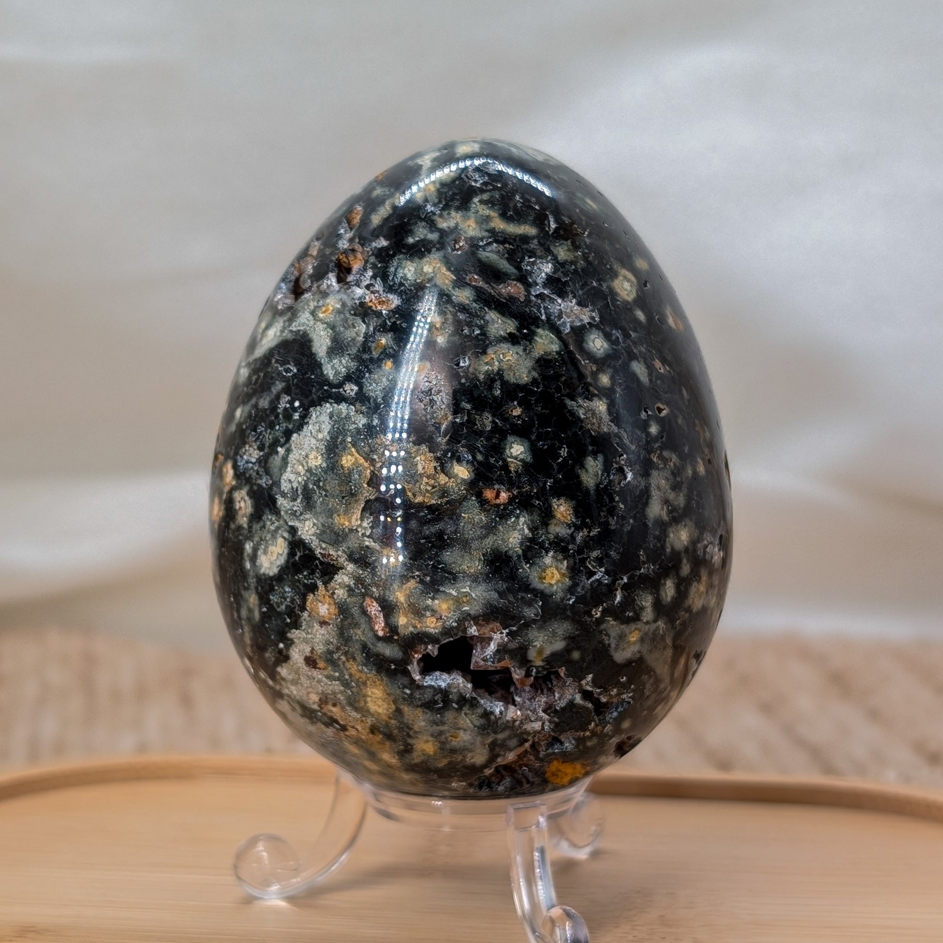 Druzy Ozeanachat Ei mit funkelnden Druse in intensiv dunklem Grün