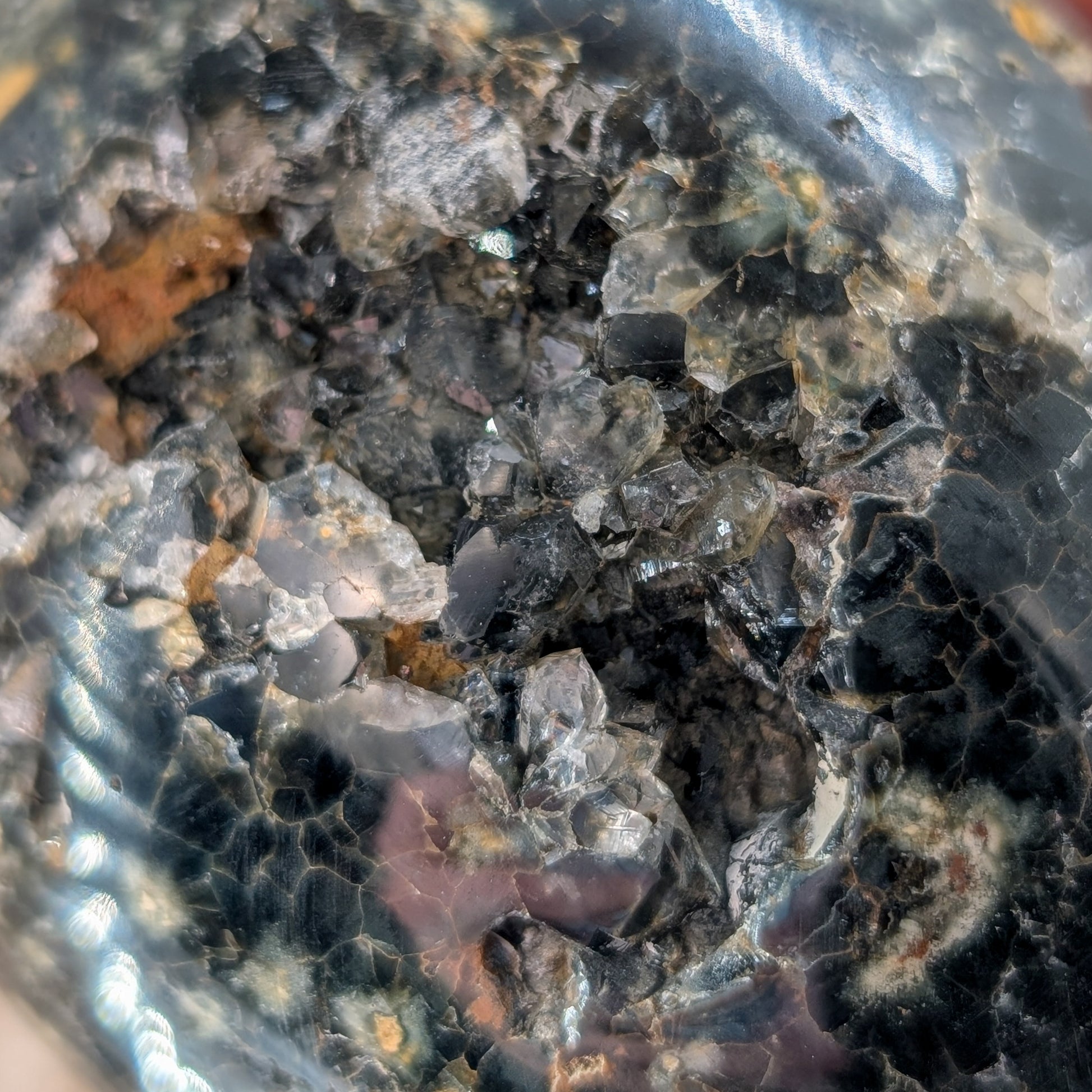 Mineralien können trotz ihrer festen Struktur brechen. Bruchstellen, Bruchstücke und Splitter können Verletzungen verursachen. Bitte gehe vorsichtig mit ihnen um.