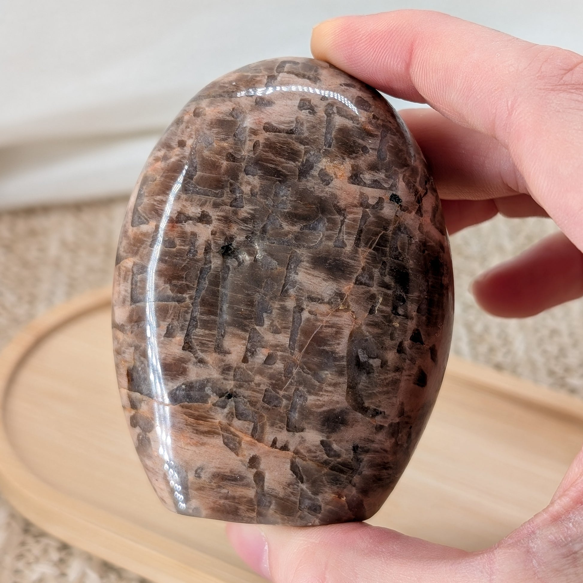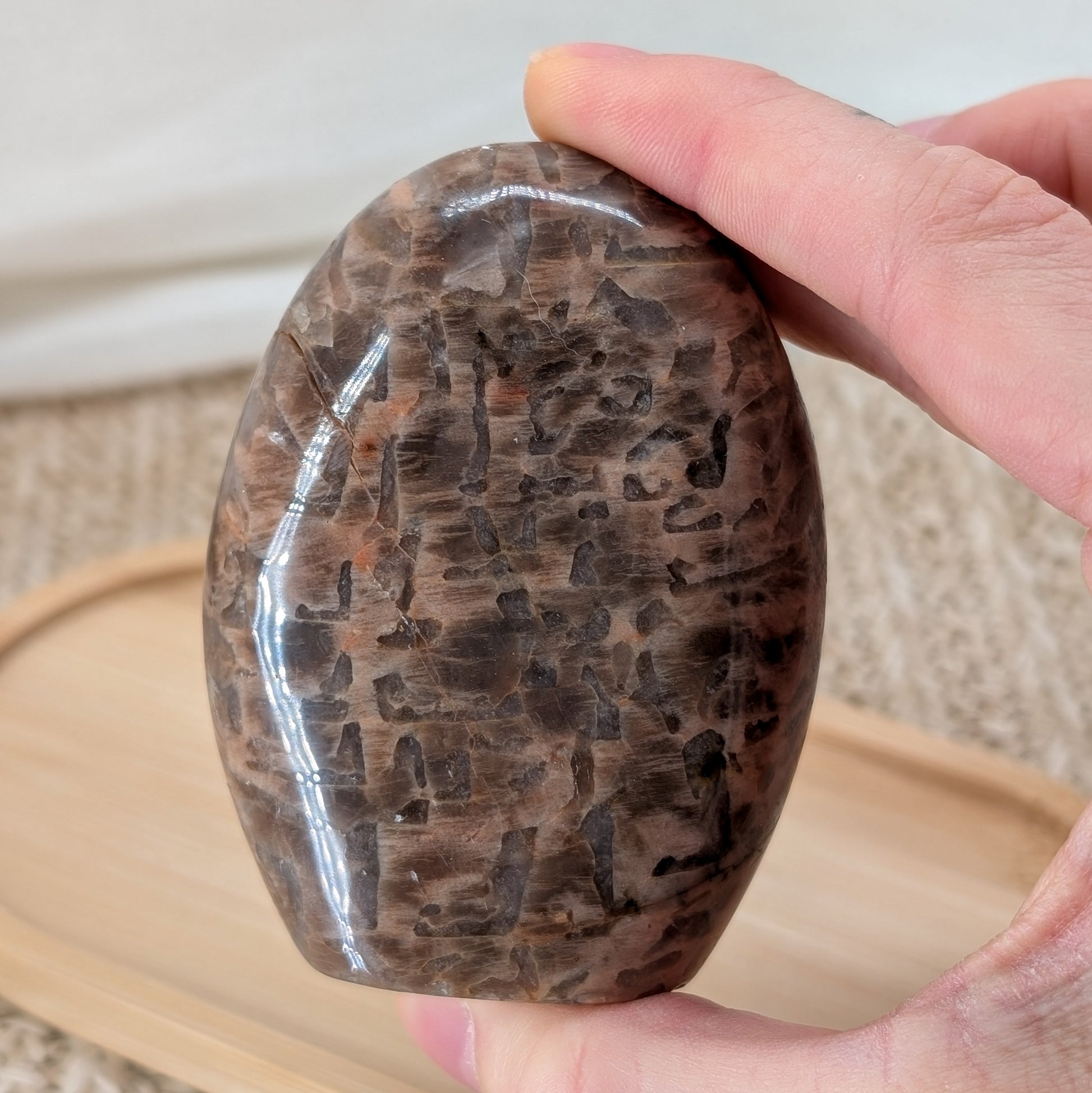 Dunkle Mondstein Freiform mit silbernem Flash und Feldspat Musterung