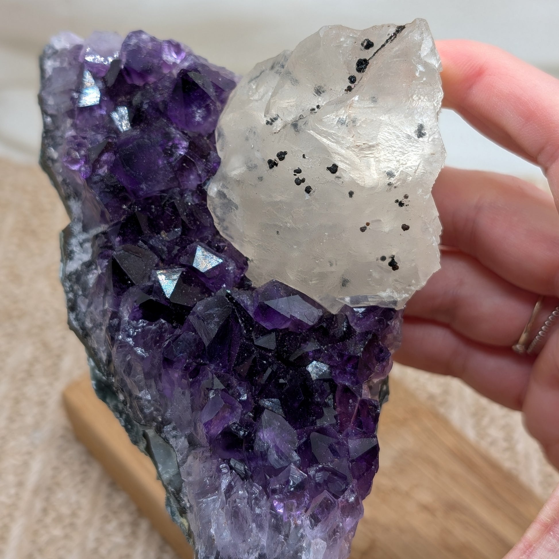 Dunkles Amethyst Cluster mit Calcit [P]