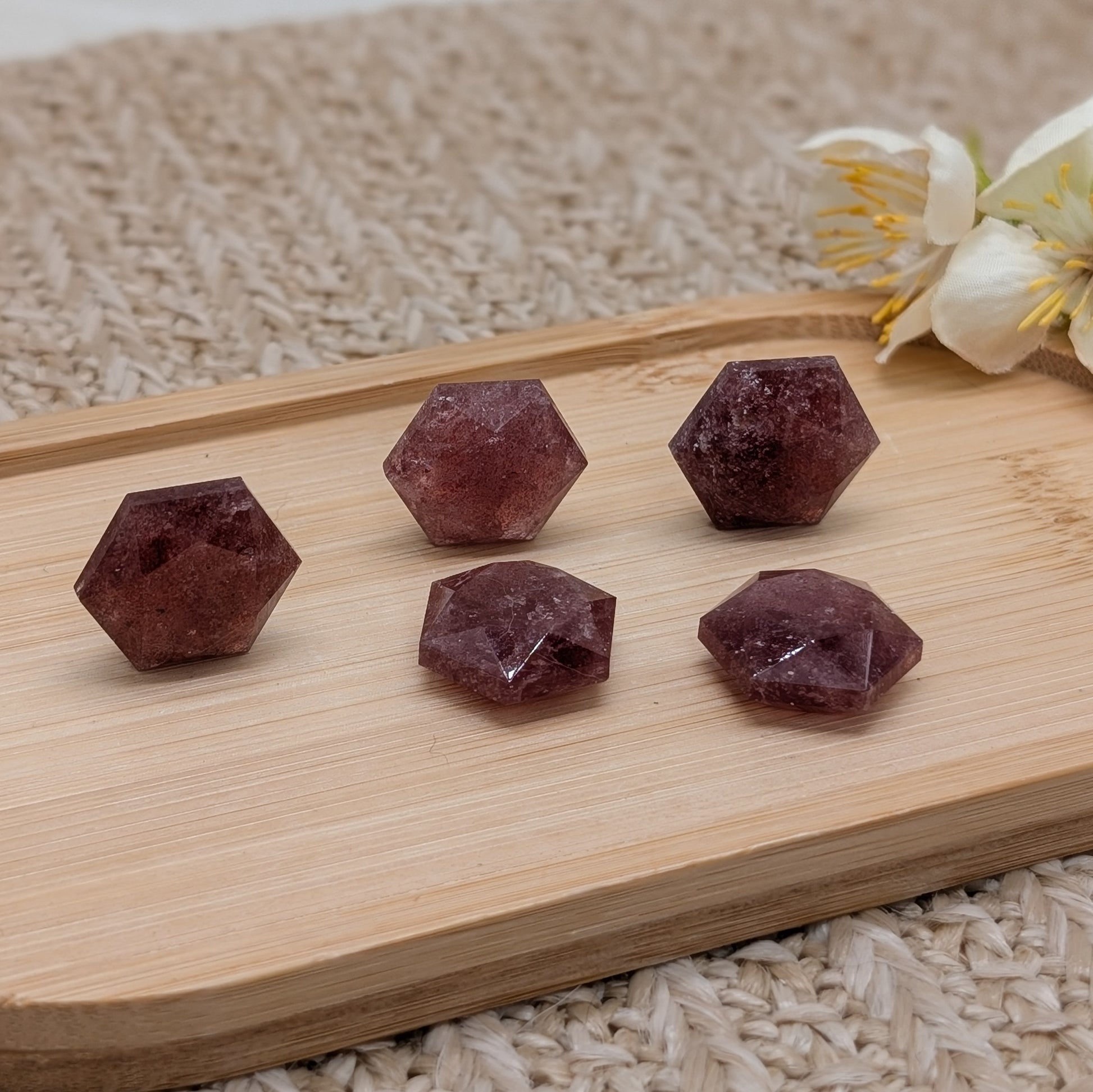 Feenstein (Hexagon Form / Schliff) aus Erdbeerquarz 🍓🧚