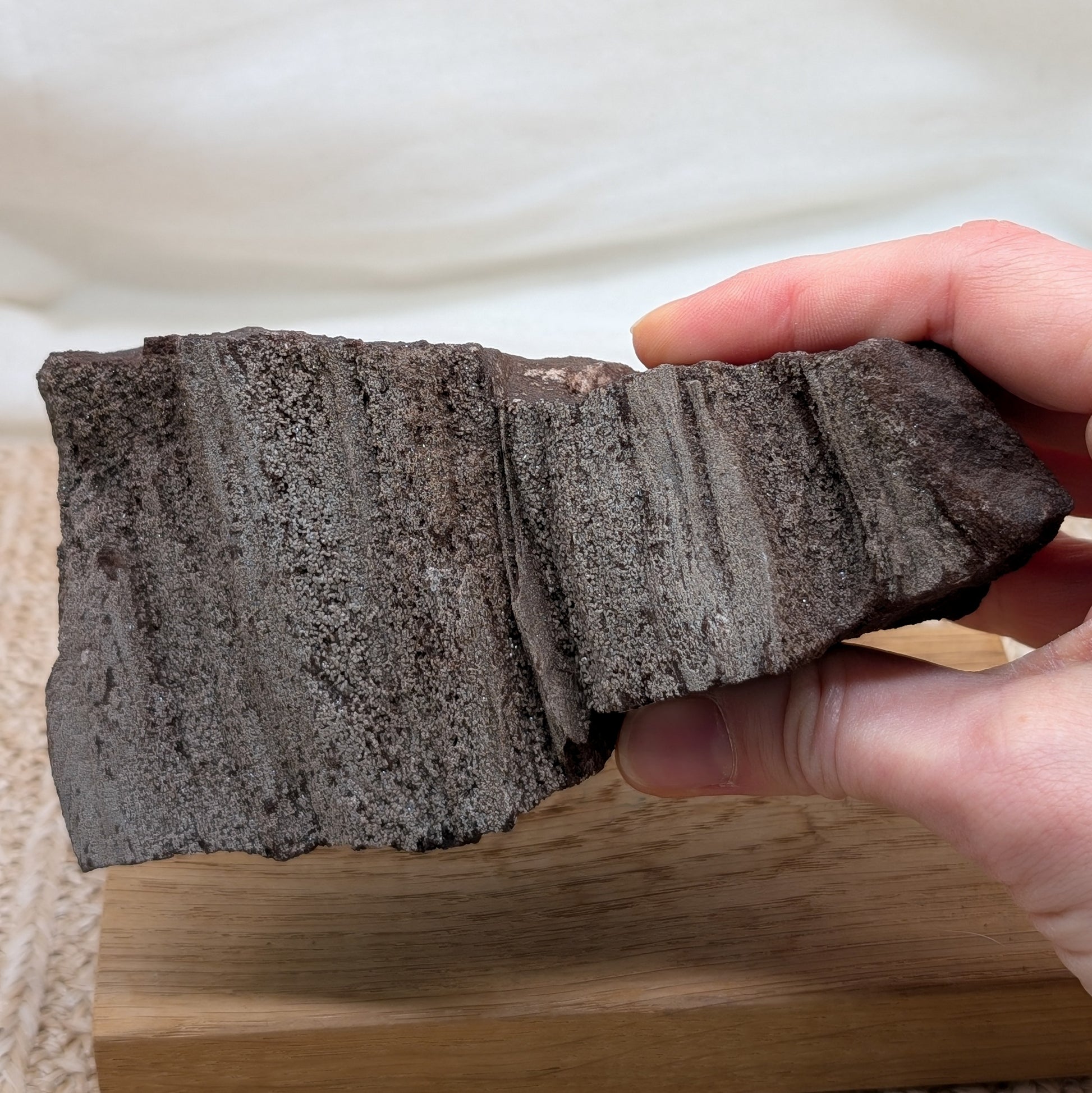 Mineralien können trotz ihrer festen Struktur brechen. Bruchstellen, Bruchstücke und Splitter können Verletzungen verursachen. Bitte gehe vorsichtig mit ihnen um.