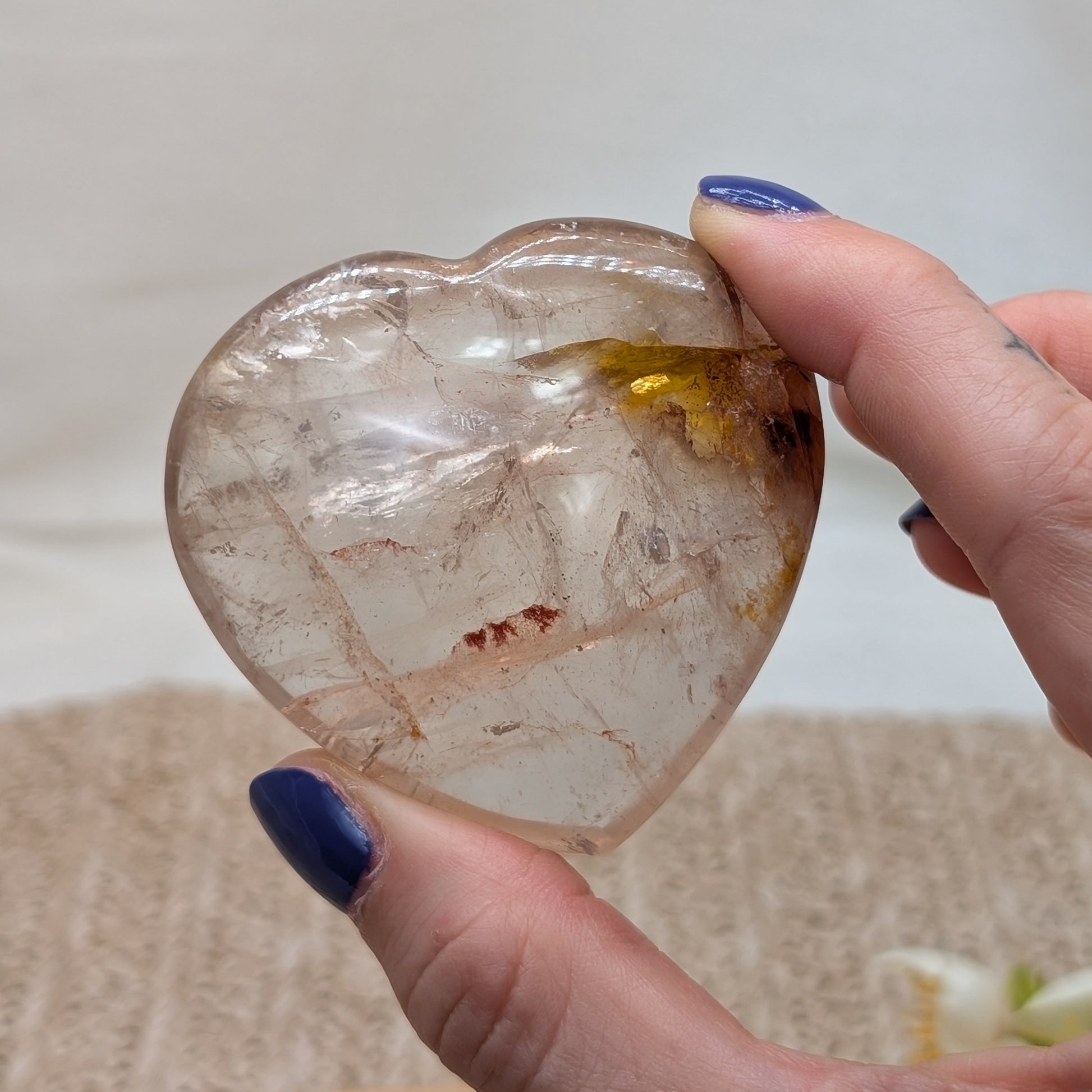 Schimmerndes Herz aus Feuerquarz / Hämatoidquarz in klarer Qualität.