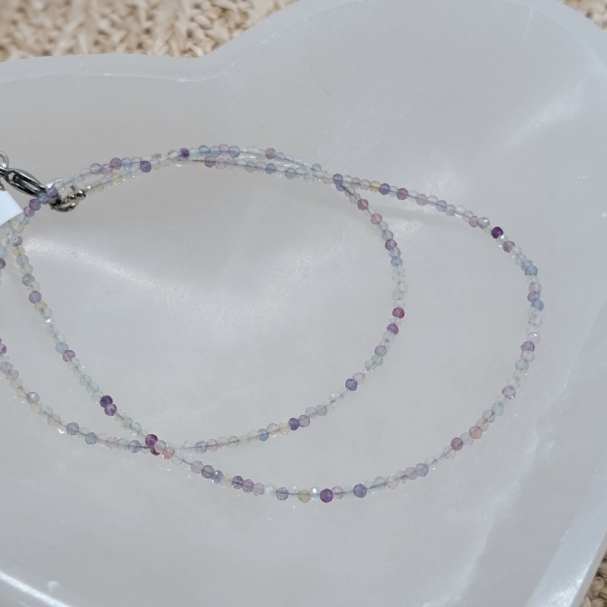 Glitzernde Fluorit Halskette mit facettierten Perlen mit 0,2 cm Durchmesser - mit Edelstahl Verschluss.