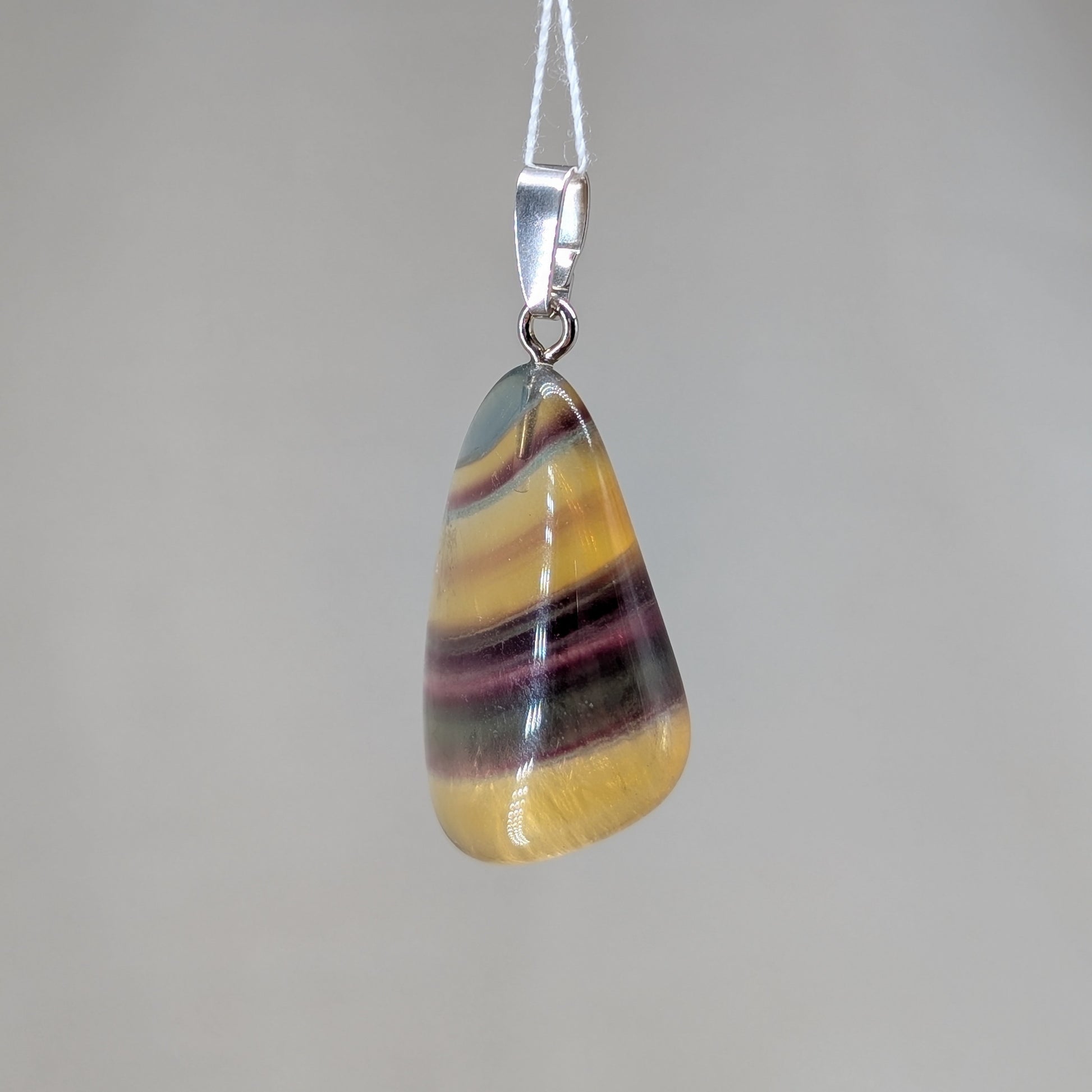 Bunter Fluorit Kettenanhänger in schöner Bänderung mit rhodinierter Öse aus 925er Silber